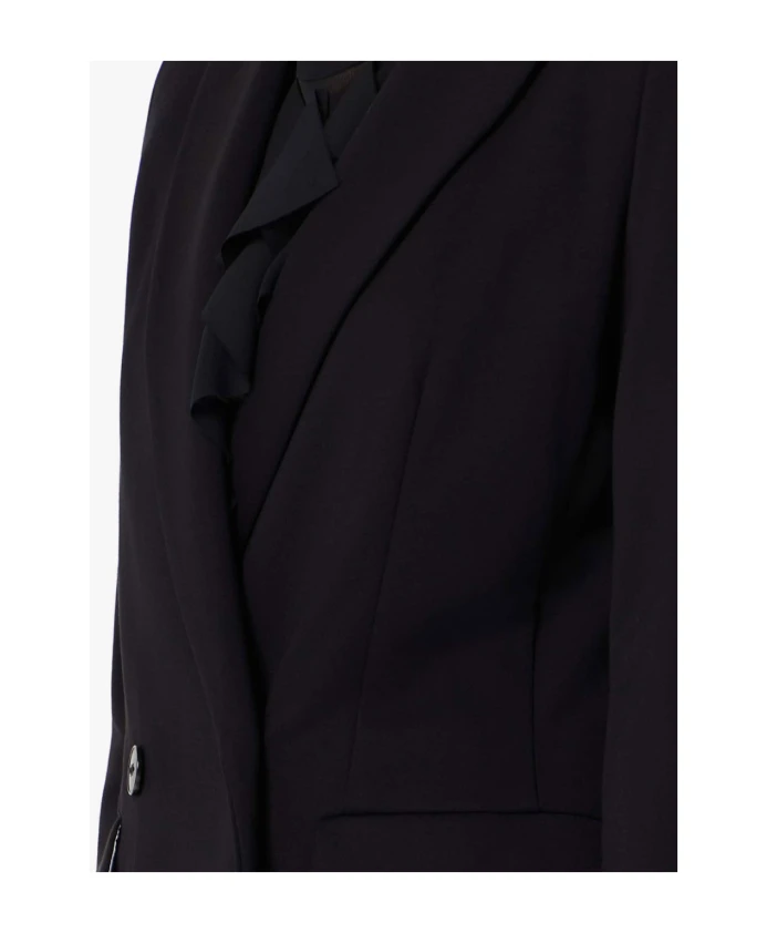 Подчеркните свой стиль с помощью черного блейзера Emme Marella Gemma для женщин. Этот блейзер сочетает в себе женственность и строгий крой, отличаясь выразительными линиями на плечах и полуприлегающим силуэтом. Изготовленный из эластичного трикотажа на основе вискозы, с отложным лацканом и двубортной застежкой, он является универсальным элементом для создания современного образа. Дополнен накладными карманами и имеет полуподкладку.