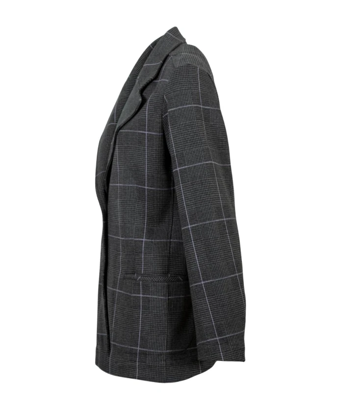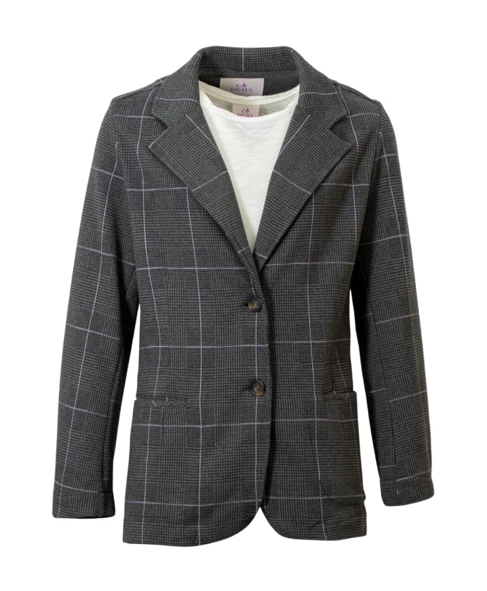 Блейзер DEHA D32383 выполнен в клетку «гусиная лапка», имеет классический лацкан и застежку на две пуговицы, идеально подходит для создания элегантных образов в стиле smart-casual. Основные характеристики: Серый | Полиэстер | Застежка на пуговицы | Боковые карманы | Клетка «гусиная лапка» | Классический лацкан | Застежка на две пуговицы | Состав и уход: 36% хлопок | 1% эластан | 4% полиамид | 41% полиэстер | 18% вискоза