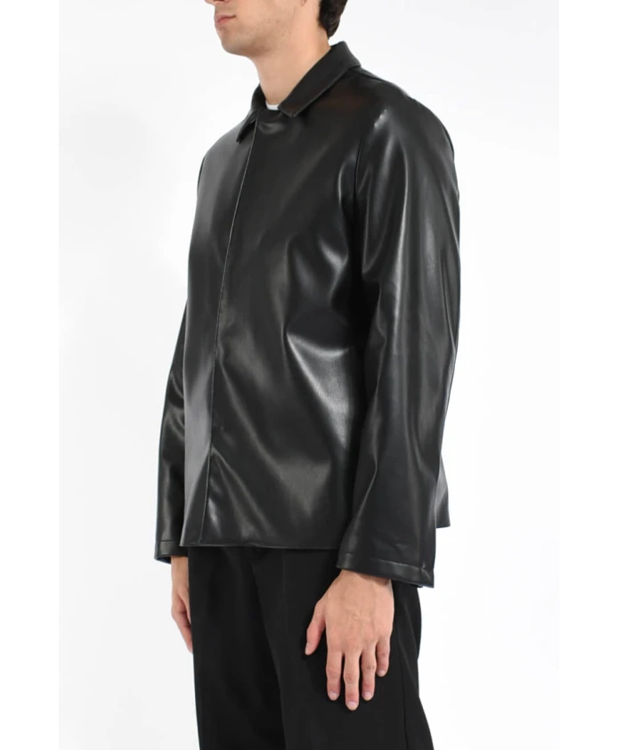 Костюмный блейзер из веганской кожи с аккуратным рубашечным воротником и потайной застежкой на кнопки. Легкий, прямого кроя, идеально подходящий для повседневного элегантного образа. Ключевые особенности: Черный | Черный | Веганская кожа | Потайная застежка на кнопки | Боковые карманы | Рубашечный воротник | Размеры и посадка: Рост модели: 189 см; размер 48 | Прямой крой | Состав и уход: 100% полиуретан | 100% полиэстер