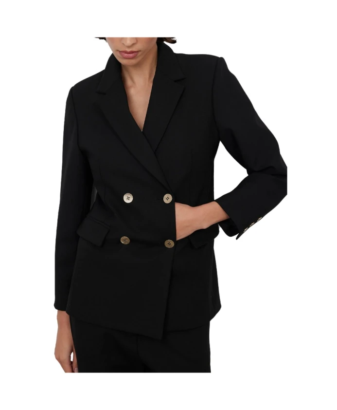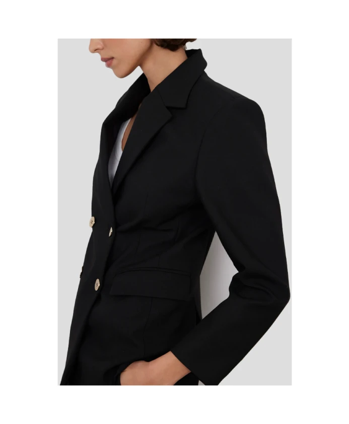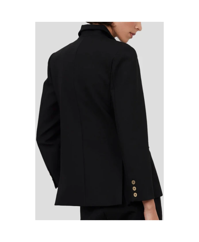 Структурированный блейзер от Bad Habits сочетает в себе приталенный, структурированный силуэт с золотистыми пуговицами и слегка эластичной тканью для элегантного и комфортного образа. Ключевые особенности: Черный | Полиэстер | Слегка эластичный | Застежка на пуговицы | Структурированный крой | Золотистые пуговицы | Размеры и посадка: Структурированный крой | Состав и уход: 62% полиэстер, 32% вискоза, 6% эластан