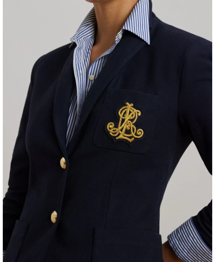 Элегантный жаккардовый блейзер от Ralph Lauren сочетает в себе строгий крой и декоративные детали. Он украшен фирменной вышитой металлизированной нитью нашивкой на груди и пуговицами с тисненым гербом, что придает ему изысканный, классический вид. Ключевые особенности: темно-синий | синий | жаккард | вышитая металлизированной нитью нашивка на груди | пуговицы с тисненым гербом | жаккардовая ткань