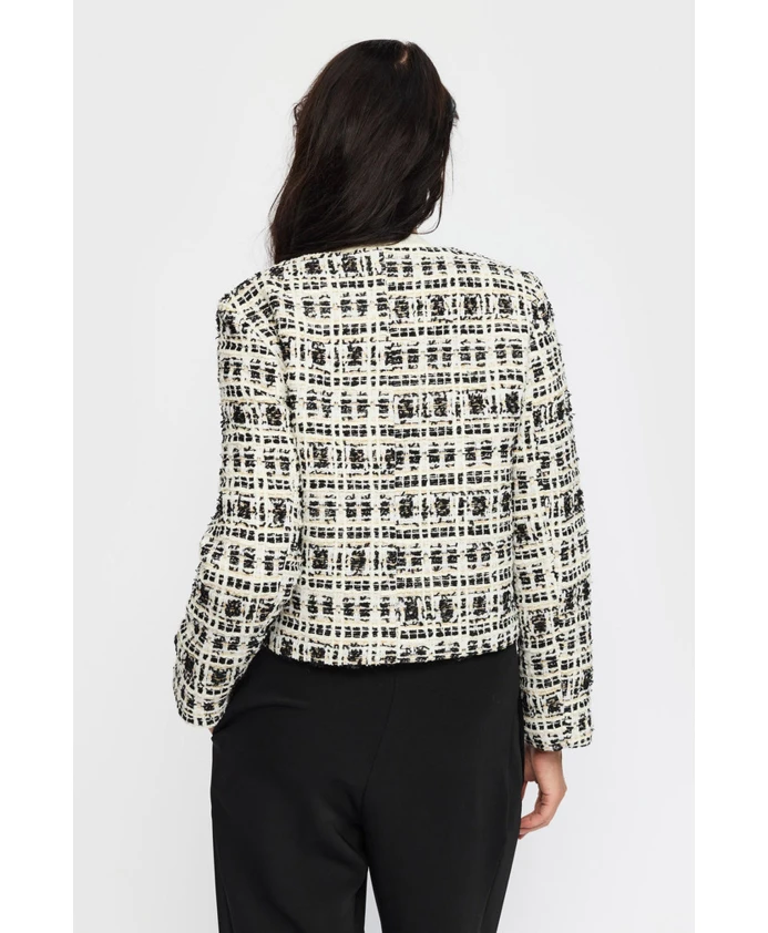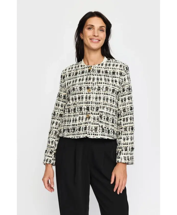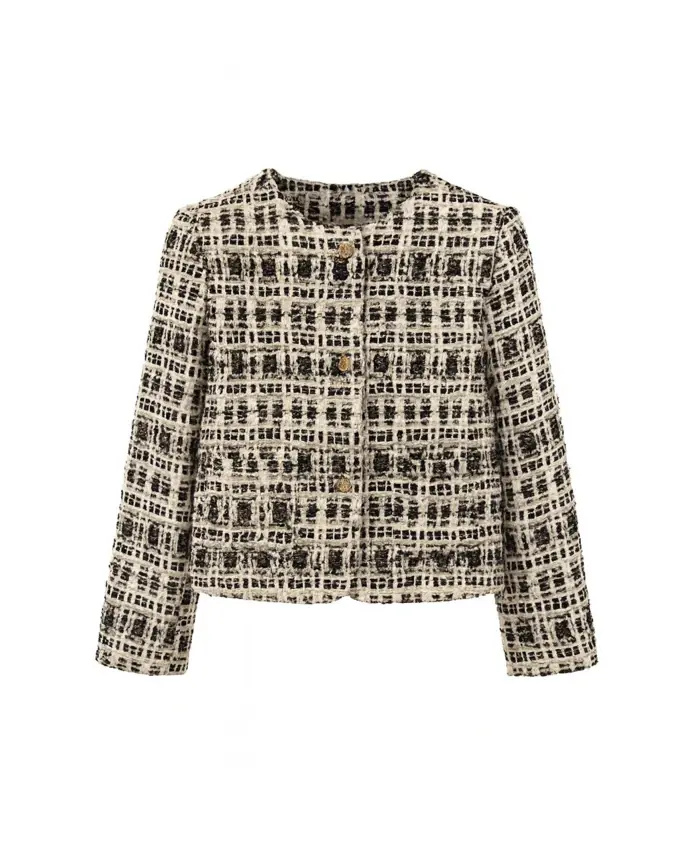 Твидовый жакет 2-Biz сочетает в себе классическую текстуру твида и структурированную многослойность для создания элегантных повседневных образов. Идеально подходит для создания стильных образов как для офиса, так и для вечерних выходов. Ключевые особенности: Многоцветный | Черная клетка