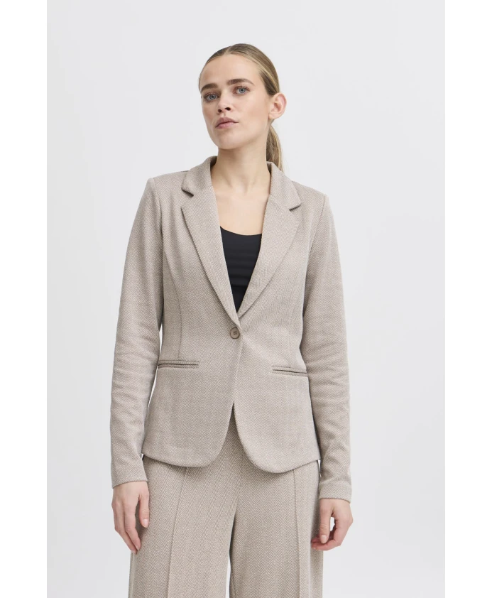 Пиджак из жаккарда в елочку Ichi, бежевый