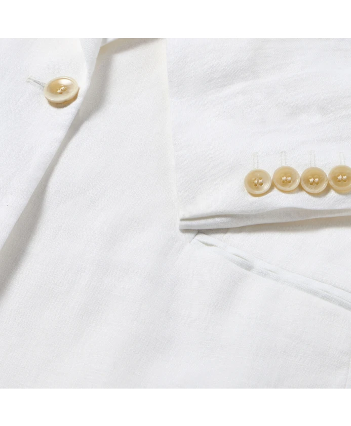 толстовка; Крой: Приталенный; Особенности: Ирландский лен от Baird McNutt, частичная подкладка, одна шлица сзади, швы AMF; Воротник: Классический с лацканами; Карманы: Прорезные карманы; Застежка: Одна пуговица; Материал: 100% лен; Сделано в: Марокко.