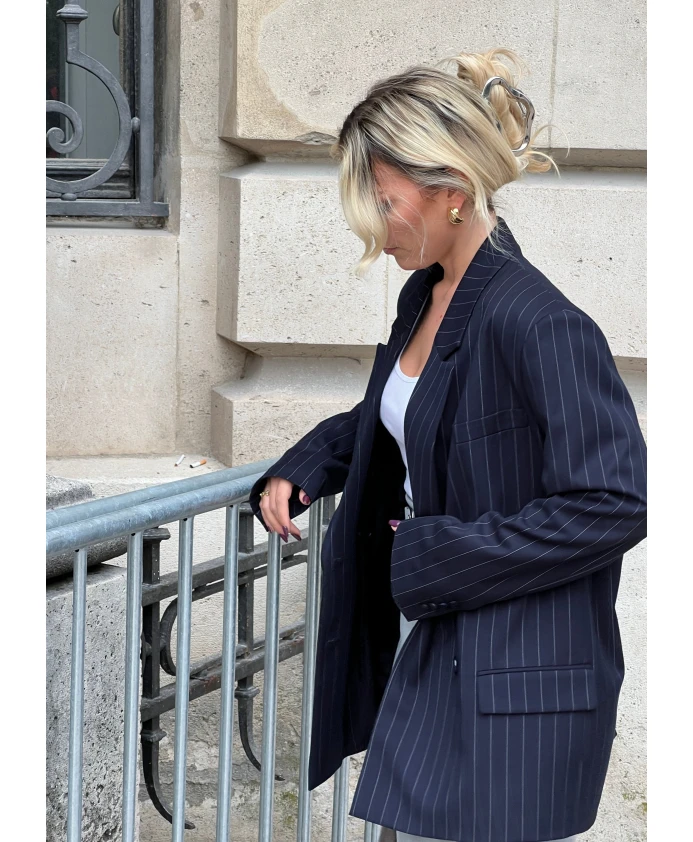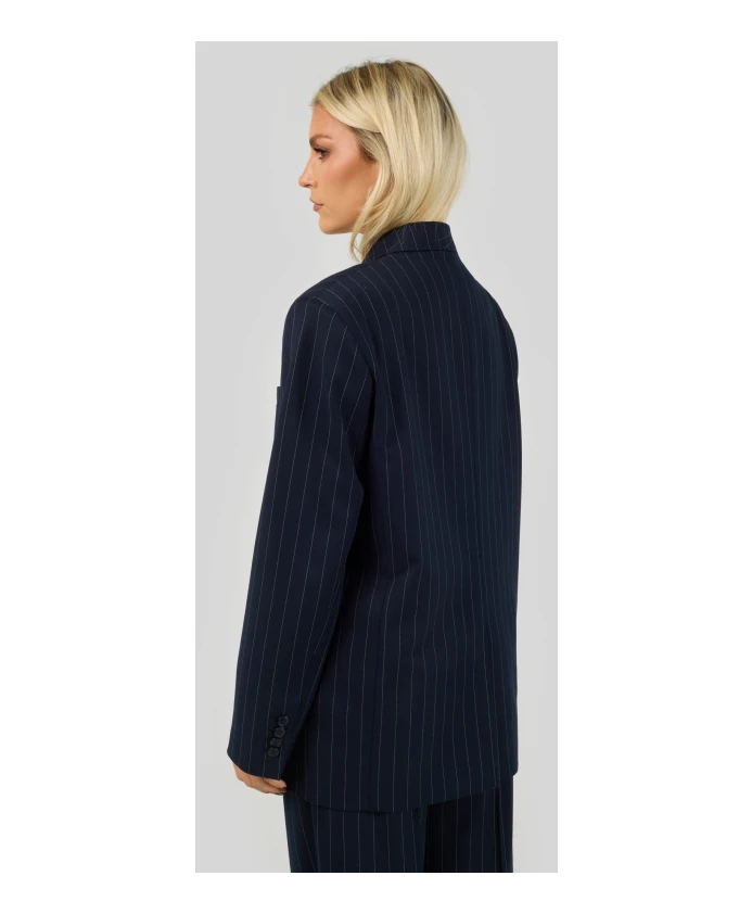 GUAJA. Полосатый блейзер - это лаконичный и универсальный вариант для создания элегантных повседневных и офисных образов, отличающийся классическим полосатым узором и линиями, вдохновленными классическим кроем. Ключевые особенности: Синий | Ós riscas