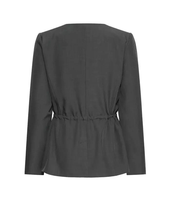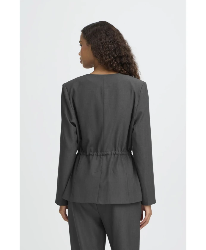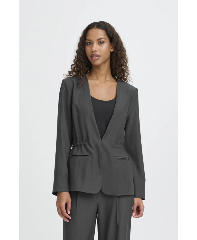 Блейзер ICHI темно-серого меланжевого цвета, разработанный как универсальный элемент многослойной одежды для работы и повседневной носки. Ключевые особенности: Серый | Темно-серый меланж