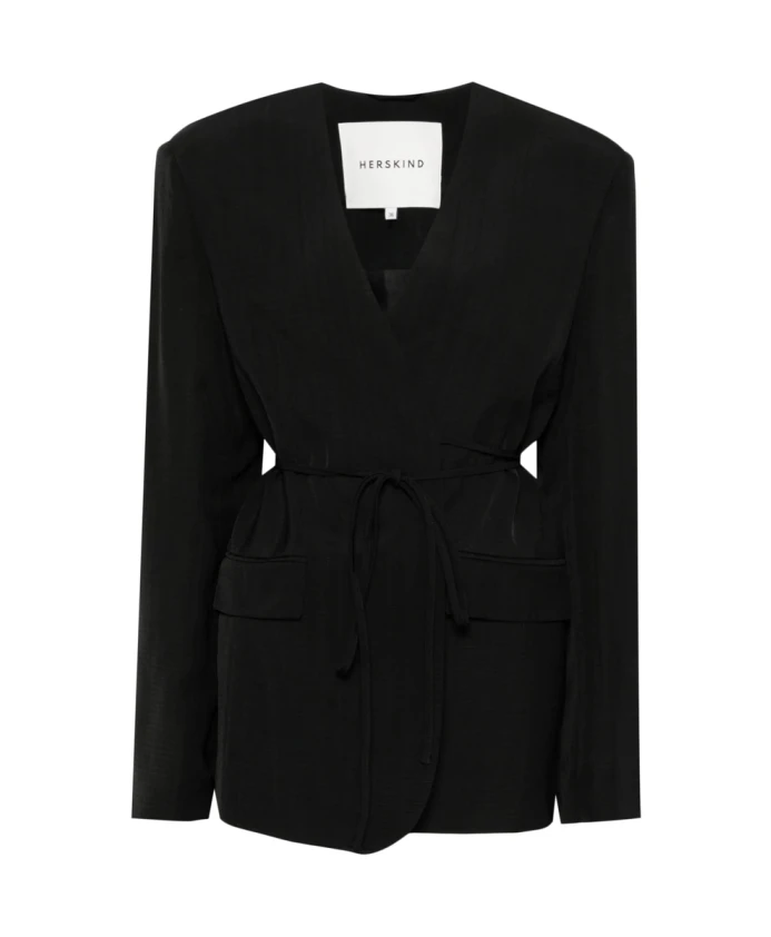 Подчеркните свой стиль с помощью этого черного блейзера от Биргитте Херскинд, который имеет завязку спереди, подплечники, внутренний карман и два передних накладных кармана.