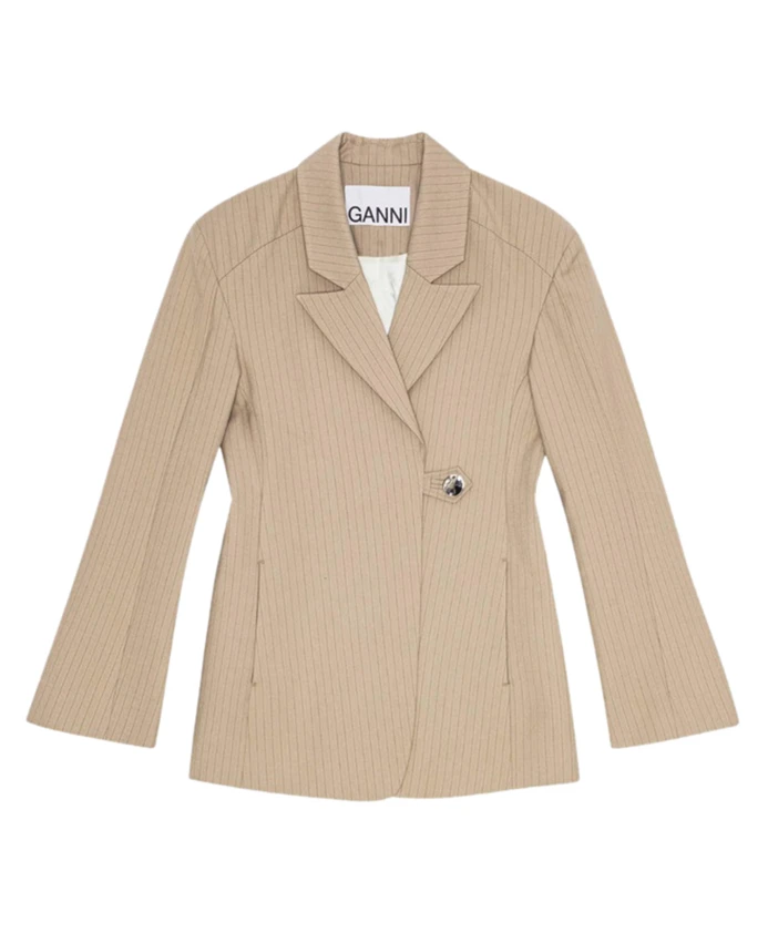 Пиджак в меланжевую полоску Ganni, бежевый
