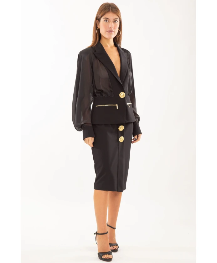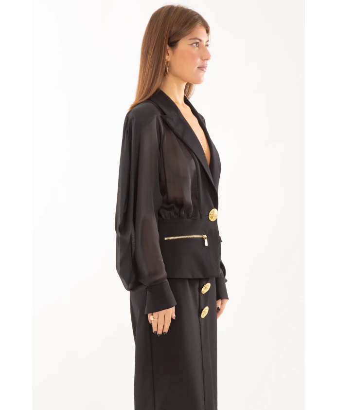 Прозрачный блейзер с золотыми пуговицами Babylon, черный