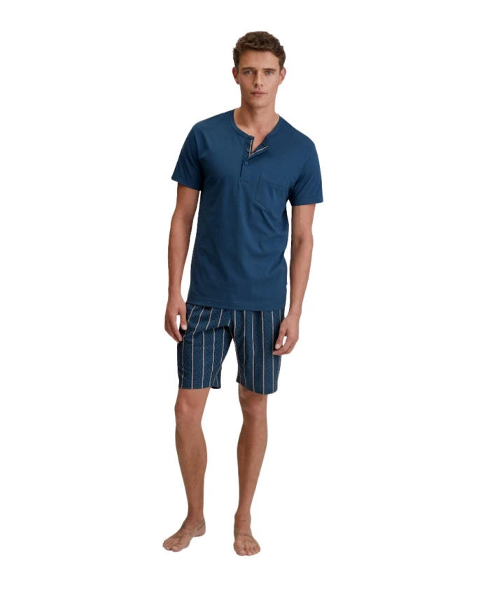 Пижамный комплект Calida Nightwear Xtra с короткими штанинами сочетает в себе вневременной дизайн бренда и высокое качество изготовления для комфортного сна и расслабленного дня дома. Мягкий хлопковый трикотаж обеспечивает воздухопроницаемость и надежную фиксацию формы. Ключевые особенности: Синий | Хлопок | Дышащая ткань | Мягкая, приятная на ощупь | Фиксация формы | Верх на пуговицах | Эластичные шорты | Короткие рукава | Классический прямой крой | Трикотаж интерлок | Размер и посадка: Стандартный крой | Короткая длина | Состав материала и уход: 100% хлопок