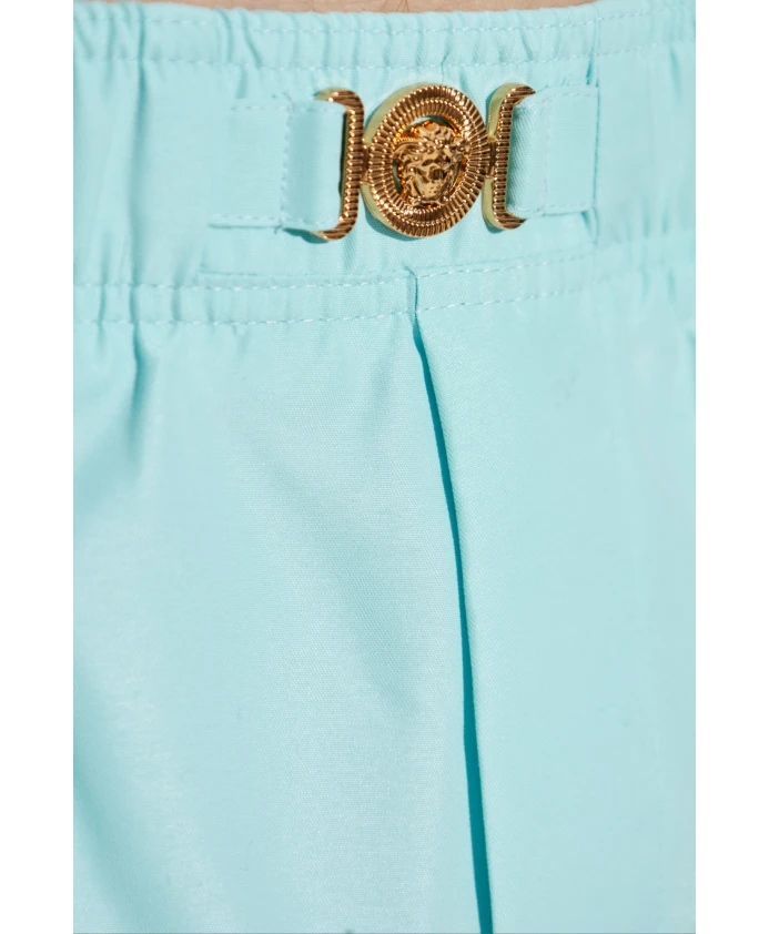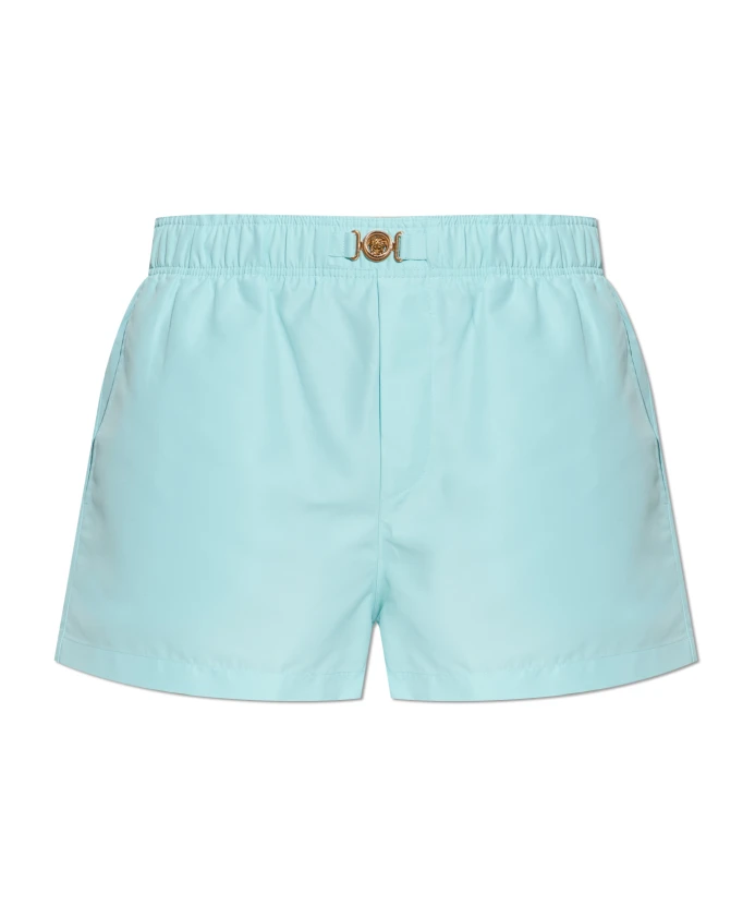 Плавки Versace - это изысканный выбор для ценителей стиля и мастерства итальянского ремесла. Светло-голубой пастельный оттенок подчеркивает утонченность и легкость дизайна, гармонично дополняя слегка мерцающую, гладкую ткань с быстросохнущими свойствами. Классический короткий крой со слегка свободным силуэтом обеспечивает неограниченную свободу движений и исключительный комфорт. Особое внимание привлекает золотая пряжка с изображением головы Медузы - узнаваемый символ бренда Versace и воплощение вневременной элегантности. Эластичный пояс с замысловатой строчкой гарантирует отличную посадку, а практичные детали, такие как два боковых кармана и задний накладной карман с застежкой на пуговицу, повышают функциональность изделия. Эти шорты - воплощение роскошной простоты, точности и подлинной идентичности бренда. ПОЧЕМУ СТОИТ КУПИТЬ ЭТОТ ТОВАР? * Престиж, подтвержденный именем Versace * Изысканные детали с культовой пряжкой Medusa * Быстросохнущая, слегка мерцающая ткань * Идеальная посадка и комфорт * Практичные карманы для дополнительной функциональности. Параметры модели: Рост: 185 см, Обхват груди: 92 см, Обхват талии: 74 см, Обхват бедер: 91 см. Модель носит размер: 4