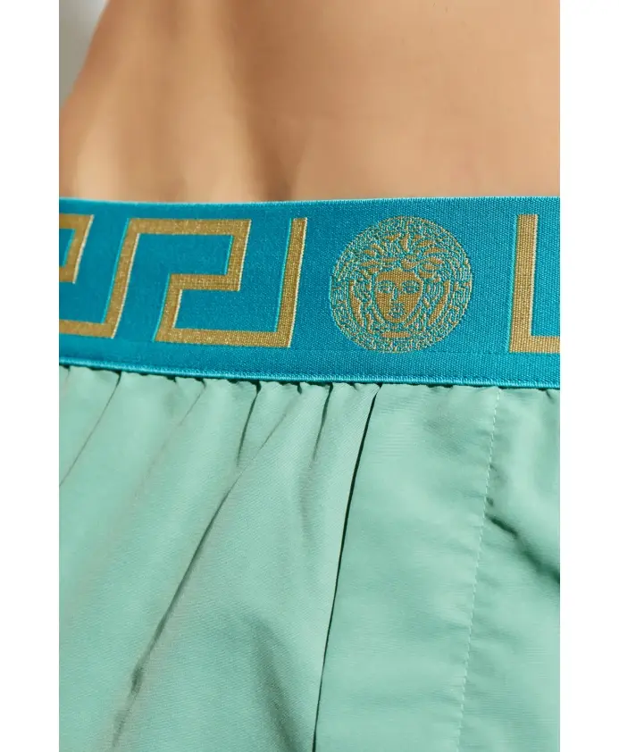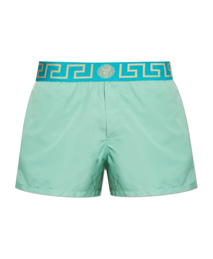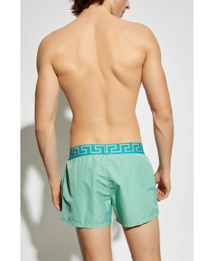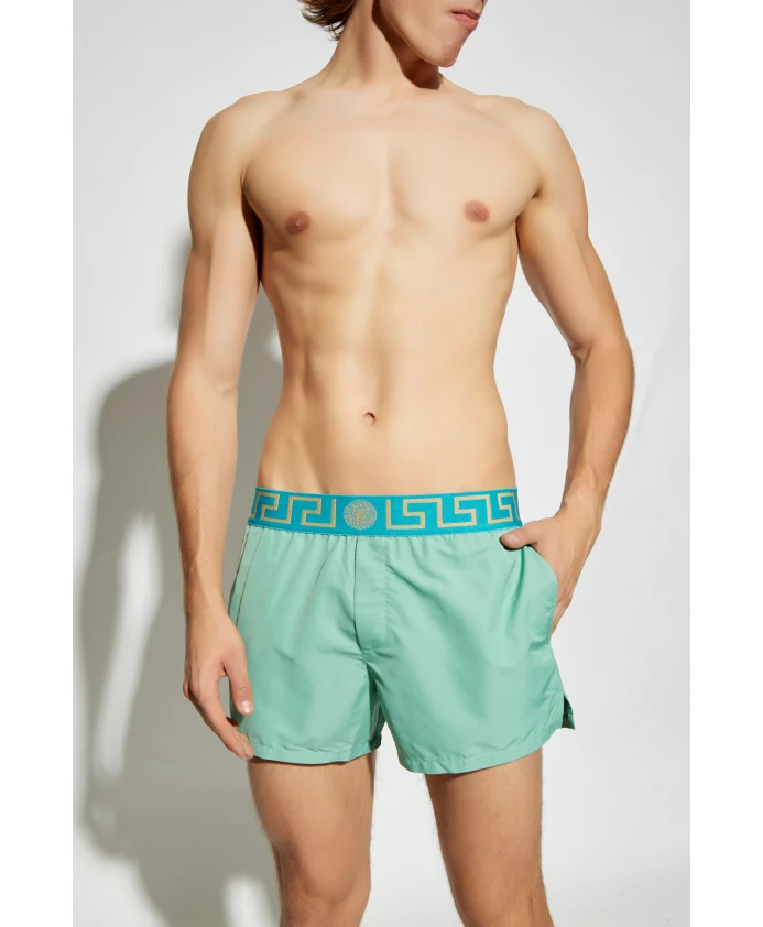 Эти плавки от модного дома Versace воплощают изысканную элегантность и престиж в мире роскошных купальников. Представленные в ярко-бирюзовом оттенке, они изготовлены из легкой, быстросохнущей ткани с едва заметным шелковистым блеском. Классический прямой крой со слегка расклешенными штанинами доходит до верхней части бедра, подчеркивая свободу движений и вневременной стиль. Неотъемлемой частью дизайна является широкий эластичный пояс, украшенный фирменным золотым узором Versace и культовым логотипом Медузы, который гарантированно привлечет внимание. Минималистичный низ без дополнительных принтов позволяет проявиться королевской эстетике бренда, подчеркивая его наследие и уникальность. ПОЧЕМУ ЭТОТ ТОВАР СТОИТ КУПИТЬ? * Престиж бренда Versace - синоним роскоши и неповторимого стиля * Уникальный пояс с эмблемой Медузы и золотой нитью * Легкая, быстросохнущая ткань для исключительного комфорта * Классический, но изысканный крой с вневременным характером * Воспевание итальянского мастерства и творческой культуры Параметры модели Рост: 185 см Обхват груди: 92 см Обхват талии: 74 см Обхват бедер: 91 см Модель носит размер: 4