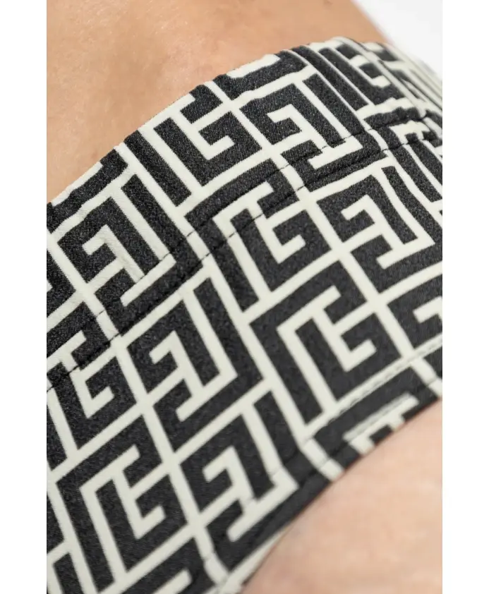 Эксклюзивные фирменные плавки от модного дома BALMAIN воплощают квинтэссенцию вневременной элегантности, органично сочетая спортивный дух с изысканным дизайном. Эта модель очаровывает своим классическим, облегающим силуэтом и привлекает внимание ярким геометрическим узором в классическом черно-белом цвете - фирменным монограммным мотивом, который перекликается с историей французского бренда. Нежная, но прочная ткань, характерная для лучших купальников, легко адаптируется к фигуре, подчеркивая ее лучшие черты и обеспечивая максимальный комфорт. Точно выполненные бесшовные края штанин и регулируемый шнурок на талии гарантируют индивидуальную посадку, а мастерское внимание к деталям удовлетворит самых взыскательных покупателей. ПОЧЕМУ СТОИТ ВЫБРАТЬ ЭТОТ ПРОДУКТ? * Исключительная эстетика, выраженная в геометрическом монограммном узоре * Удобная посадка благодаря эластичному материалу * Точная и комфортная обработка, улучшающая ощущения при ношении * Уникальный дизайн из эксклюзивной коллекции Balmain Параметры модели Рост: 193 см Обхват груди: 95 см Обхват талии: 82 см Обхват бедер: 93 см Модель носит размер: L