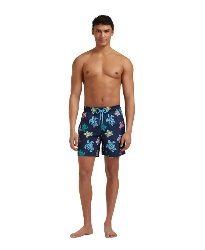Плавки Vilebrequin Mahina - это ультралегкие плавки с принтом «Черепахи разных цветов», разработанные для удобной упаковки и повседневного использования на пляже. Они складываются в собственный задний карман для компактного хранения и удобства в путешествиях. Ключевые особенности: Синий | Темно-синий | Полиэстер | Ультралегкая ткань | Быстросохнущие | Обработка для быстрого высыхания | Эластичный пояс со шнурком | Складываются в задний карман для компактного хранения | Два боковых кармана | Задние люверсы для отвода воды | Принт «Черепахи разных цветов» по всей поверхности | Шнурок с наконечником из сплава Zamac | Задний карман в сложенном виде превращается в мешочек | Размеры и посадка: Длина по бокам (размер M): 39,5 см | Длина внутреннего шва (размер M): 15,5 см | Стандартный крой | Состав и уход: 100% полиэстер | Машинная стирка в холодной воде (30°C) в щадящем режиме. Не отбеливать. Не сушить в сушильной машине. Сушить в тени. Гладить при низкой температуре. Не подвергать химчистке. Стирать с вещами аналогичного цвета.