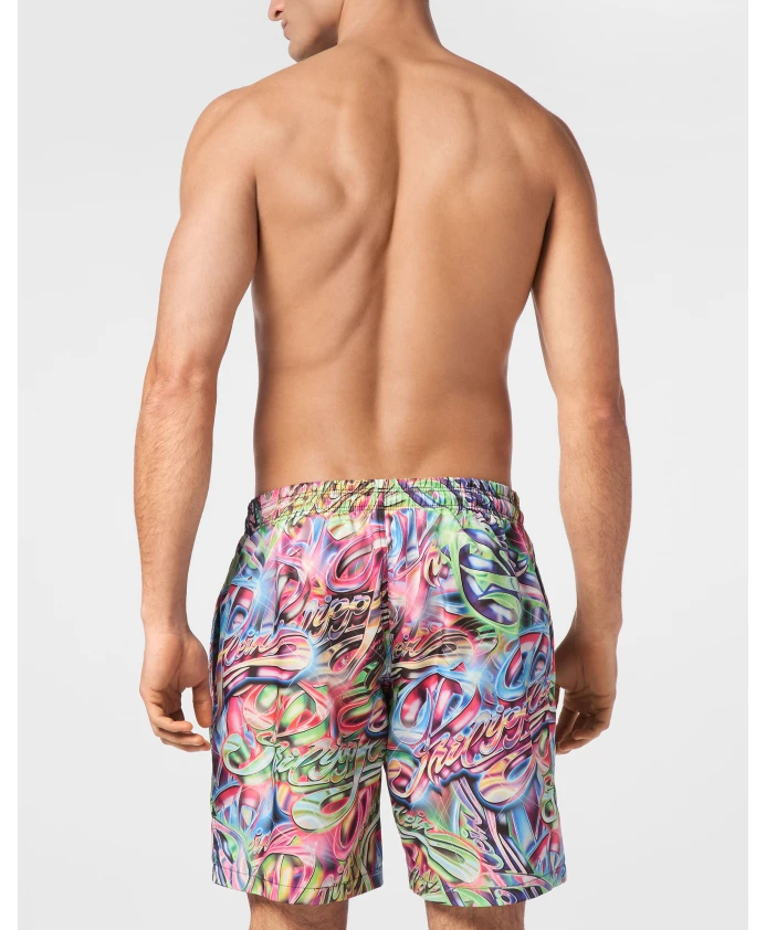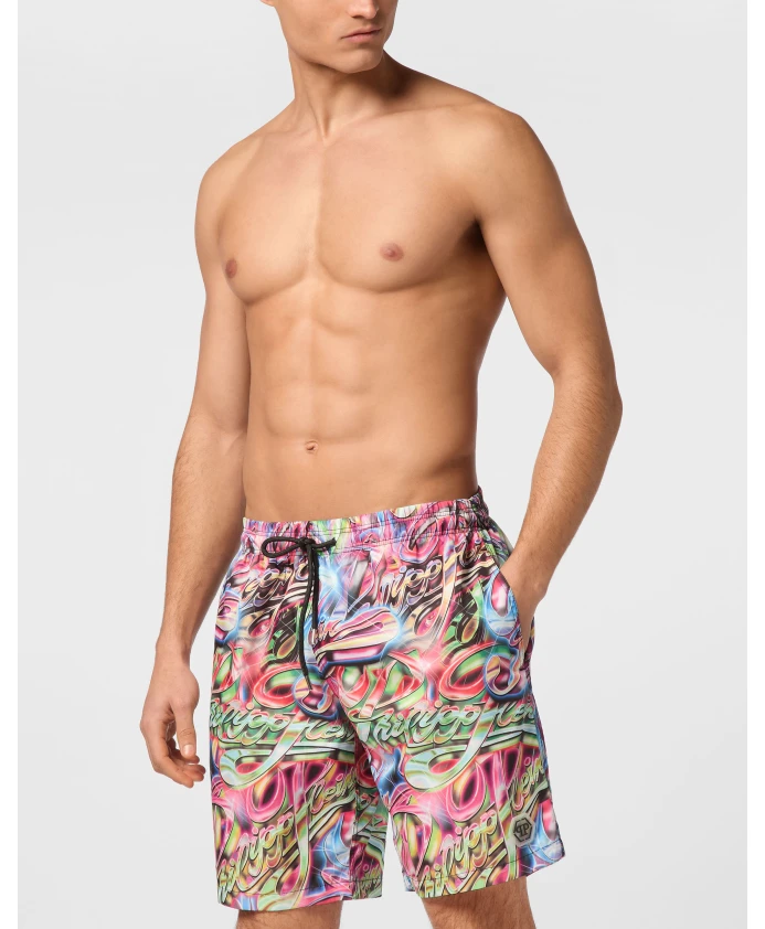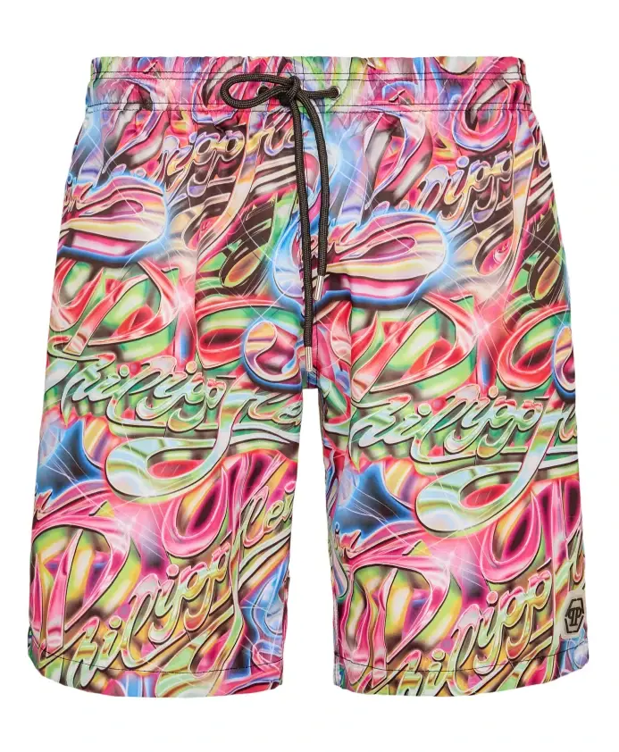Плавки Philipp Plein с принтом по всей поверхности и фирменной шестиугольной резиновой нашивкой из полипропилена. Предназначены для пляжа и бассейна, имеют эластичный пояс на шнурке, сетчатую подкладку и практичные боковые карманы. Ключевые особенности: Разноцветные | Нейлон | Эластичный пояс на шнурке | Два боковых кармана | Сетчатая подкладка | Принт по всей поверхности | Шестиугольная резиновая нашивка из полипропилена на левой штанине | Узорчатый нейлоновый материал | Состав и уход: Нейлон | Сетчатая подкладка