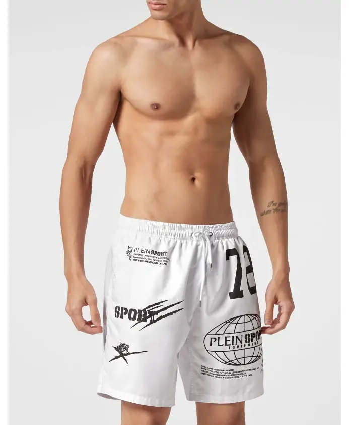 Плавки Plein Sport сочетают в себе легкий и прочный полиэстер с фирменными графическими деталями бренда. Созданные для бассейна, пляжа или спа-салона, они обеспечивают баланс комфорта и спортивного стиля для отдыха. Ключевые особенности: Белый | Полиэстер | Легкий | Прочная полиэстеровая ткань | Подходит для бассейна и пляжа | Эластичный пояс со шнурком | Боковые карманы | Сетчатая подкладка | Фирменные принты и надписи на обеих штанинах | Состав и уход: 100% полиэстер | Машинная стирка в холодной воде