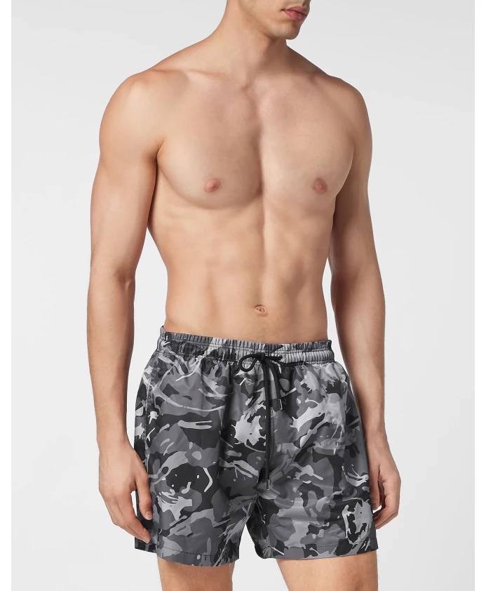 Плавки Plein Sport сочетают в себе яркий камуфляжный принт и прочную, невероятно удобную конструкцию из полиэстера. Созданные для теплого отдыха, поездок к бассейну и спа-процедур, они предлагают сбалансированное сочетание легкости, комфорта и практичных деталей. Ключевые особенности: Черный | Полиэстер | Прочная ткань | Легкий | Удобный | Эластичный пояс со шнурком | Боковые карманы | Сетчатая подкладка | Камуфляжный принт по всей поверхности | Прорезиненная нашивка | Состав и уход: 100% полиэстер