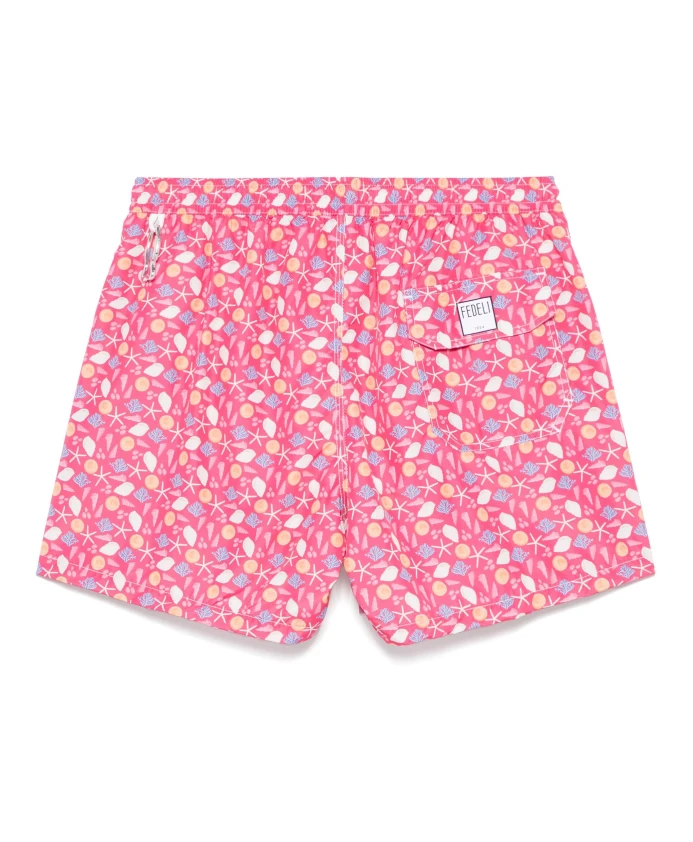 Эти плавательные шорты Fedeli позволят вам выглядеть стильно на пляже. Изготовленные в Италии, они имеют удобный эластичный пояс и практичные боковые карманы. Ключевые особенности: Розовый | 100% полиэстер | Быстросохнущие | Эластичный пояс со шнурком | Боковые карманы | Логотип Fedeli на спине | Размер и посадка: Стандартный крой | Состав и уход: 100% полиэстер | Машинная стирка в холодной воде, не сушить в сушилке.