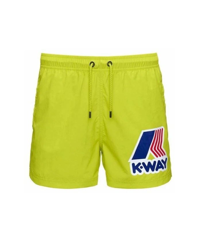 Мужские нейлоновые плавательные шорты. Короткий прямой крой. Эластичный пояс с внутренним шнурком. Большой логотип K-WAY на передней части. Два открытых боковых кармана, один карман на липучке и пришитая сзади лента K-WAY. Сетчатая подкладка. QR-код. 100% нейлон. Подкладка: 100% полиэстер.