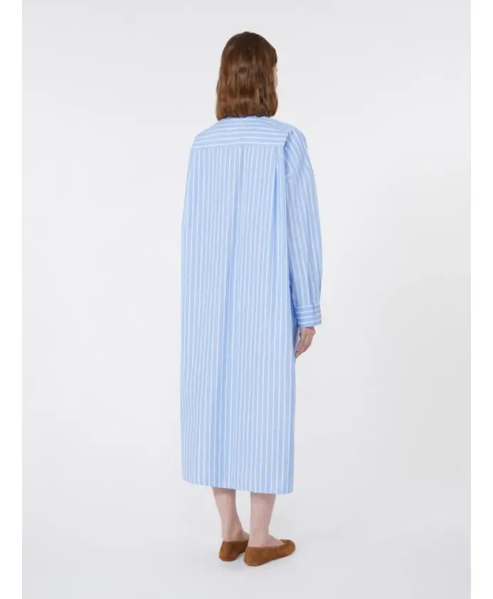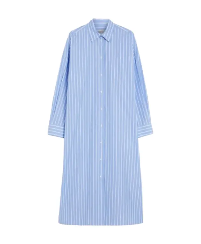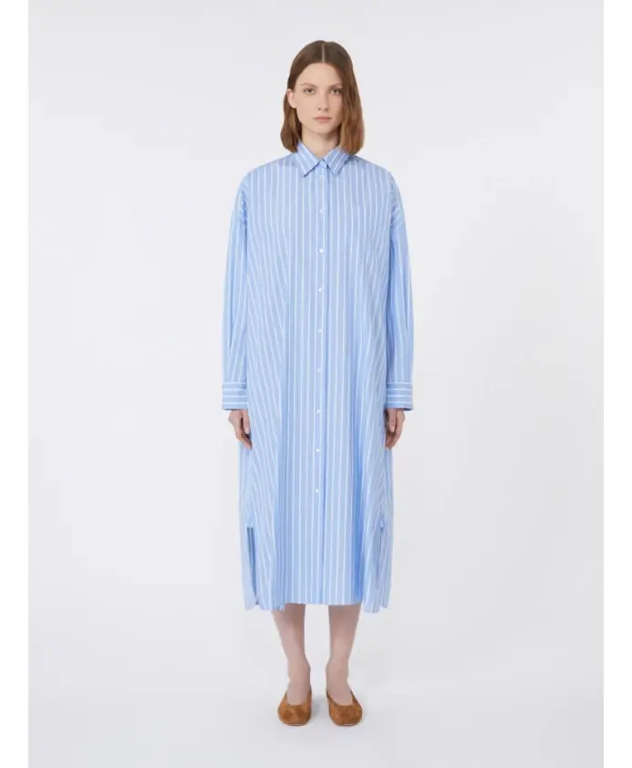 Платье-рубашка Weekend Max Mara Molina сочетает в себе свободный, объемный силуэт и плотный хлопковый поплин для создания непринужденного дневного образа. Длинный прямой крой и открытая планка на пуговицах делают его универсальным вариантом как для повседневных, так и для нарядных образов. Ключевые особенности: Синий | Светло-синий | Хлопок | Ткань средней плотности | Полная планка на пуговицах спереди и открытые пуговицы | Врезные боковые карманы и нагрудный карман | Манжеты на пуговицах | Боковые разрезы по низу | Длинное платье-рубашка | Прямой крой | Объемный силуэт | Складчатая кокетка сзади | Спущенные рукава | Размеры и посадка: Свободный крой - соответствует размеру; рекомендуем выбирать свой обычный размер. | Состав материала и уход: 100% хлопок | Машинная стирка в холодной воде в щадящем режиме; не отбеливать; не сушить в сушильной машине; сушить в тени; гладить при низкой температуре; профессиональная химчистка (перхлорэтилен, мягкий); изделие стирать наизнанку и в закрытом виде; не содержит нетекстильных частей животного происхождения.