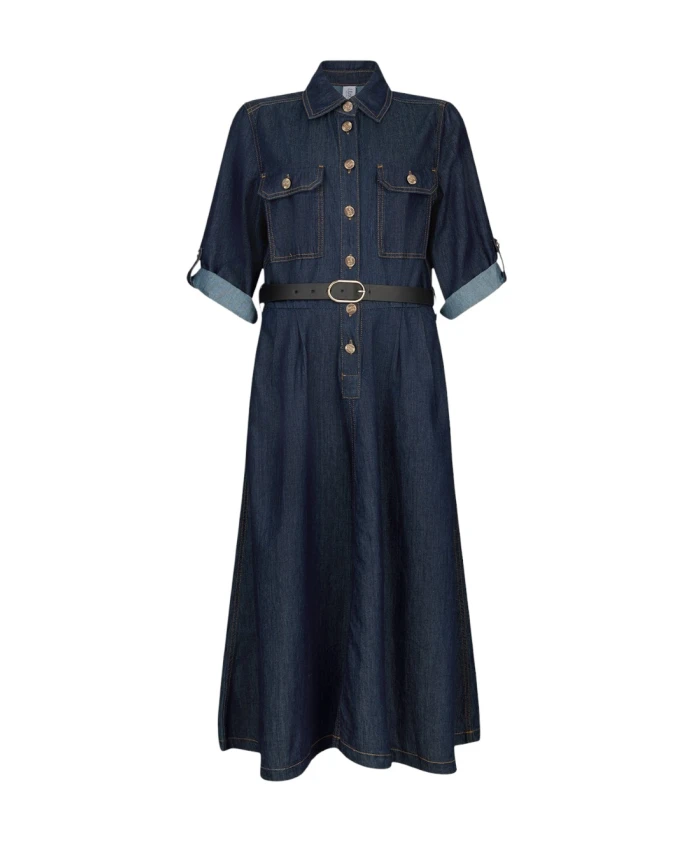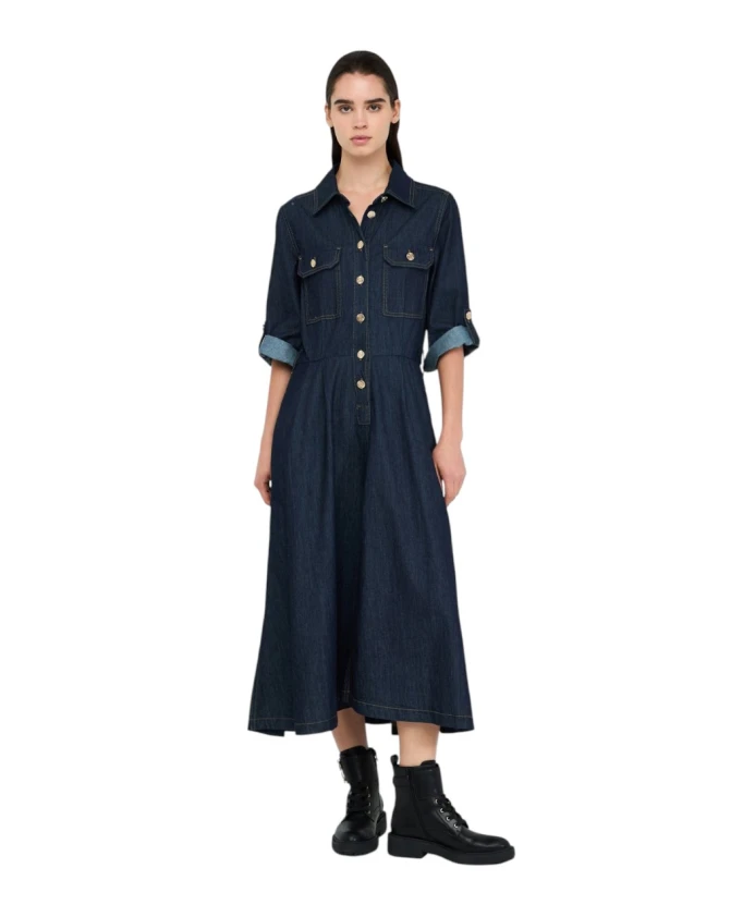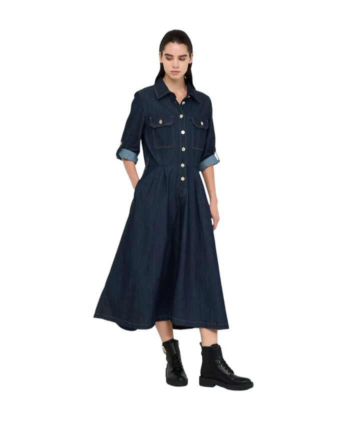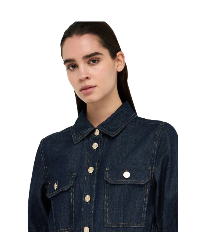 Платье-рубашка Liu Jo Denim переосмысливает классический стиль «рубашка» с использованием хлопкового денима и подчеркнутой талии. Регулируемый пояс и застежка на пуговицах делают его универсальным вариантом для дневных и повседневных случаев. Ключевые особенности: Классический цвет | Хлопок | Регулируемый пояс с пряжкой | Застежка на пуговицах | Подкладка из полиэстера | Воротник рубашечного типа | Рукава 3/4 с отворотами | Вытачки для подчеркивания талии | Подчеркнутый силуэт | Состав и уход: Верхняя ткань: 100% хлопок | Подкладка: 100% полиэстер | Машинная стирка при температуре не выше 30°C в щадящем режиме; стирать наизнанку с жидким моющим средством; не тереть; снять пояс перед стиркой; не отбеливать; не сушить в сушильной машине; не подвергать химчистке; гладить при низкой температуре (макс. 110°C), избегать глажения декоративных элементов.