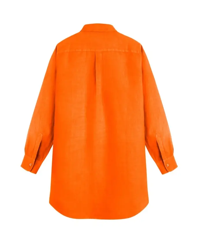 Платье-рубашка Fragance от Vilebrequin - это легкое льняное платье, которое можно носить поверх купальника в спокойные дни отдыха. Дышащая, воздушная ткань и длинный, простой силуэт делают его незаменимым повседневным вариантом для прогулки с пляжа на обед. Ключевые особенности: Оранжевый | Абрикосовый | Лен | Дышащая ткань | Легкий | Струящийся крой | Застежка на пуговицы спереди | Регулируемые рукава на пуговицах (можно подвернуть наполовину) | Воротник | Длинные рукава | Длинный крой | Вышивка в тон по низу | V-образные пуговицы | Размеры и посадка: Свободный, расслабленный крой | Длинный крой; предназначено для ношения поверх купальника | Материал и уход: 100% лен | Машинная стирка при 30°C с вещами аналогичного цвета. Не отбеливать. Не сушить в сушильной машине. Гладить с изнанки при средней температуре.
