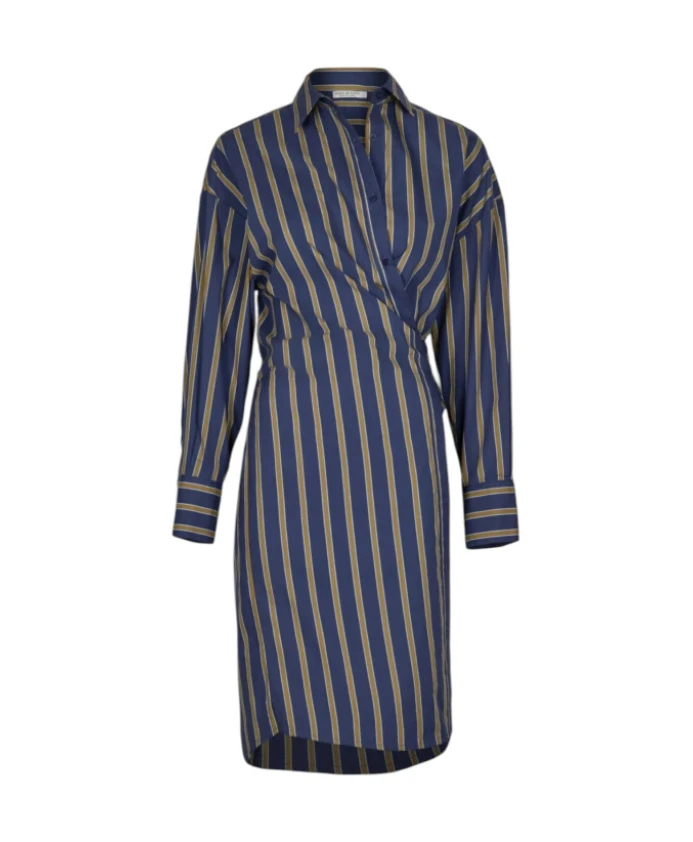 Оставайтесь стильными и чувствуйте себя комфортно в этом платье LILY Imprimè Pelicano от Mare Di Latte. Это платье-рубашка миди выполнено из тонкого темно-синего хлопкового поплина с полосками цвета хаки. Оно имеет длинные рукава, воротник рубашечного типа и универсальные детали в виде завязок. Принт Pelicano добавляет неповторимый шарм. Состав: 100% хлопок. Цвета: темно-синий, хаки.