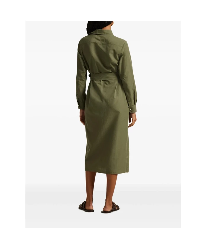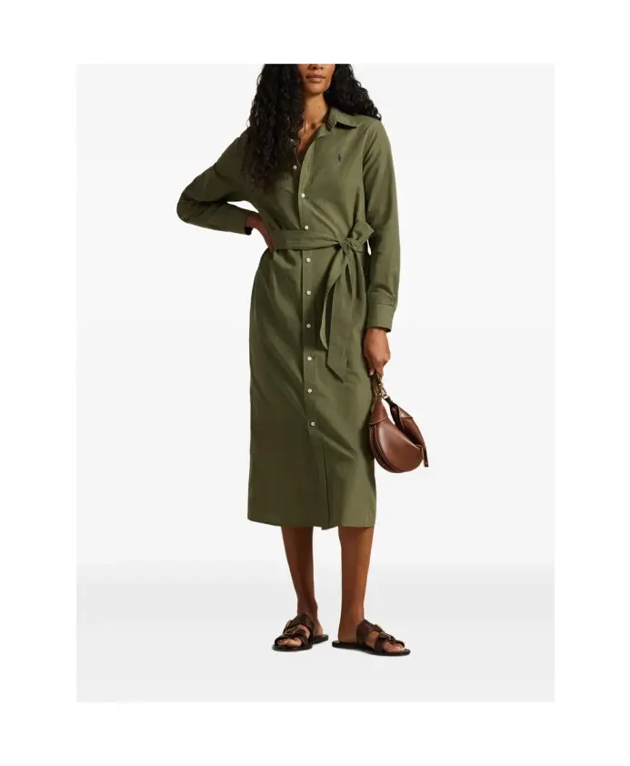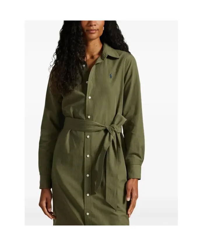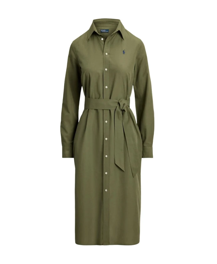 Платье-рубашка Ralph Lauren оливково-зеленого цвета сочетает в себе силуэт рубашки с воротником и съемным поясом для создания элегантного, регулируемого образа. Застежка на пуговицы спереди и длинные рукава делают его универсальным вариантом для дневного и переходного периодов. Ключевые особенности: Оливково-зеленый | Застежка на пуговицы спереди | Съемный пояс | Воротник | Длинные рукава | Силуэт платья-рубашки