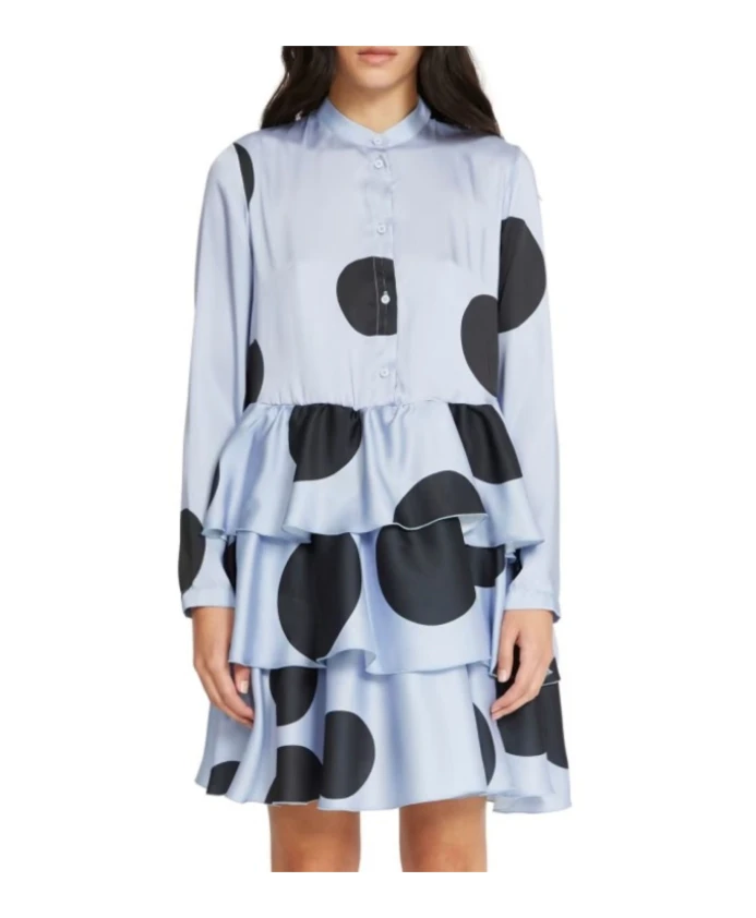 Дополните свой дневной образ этим стильным платьем-рубашкой от Silvian Heach. Это короткое платье из полиэстера идеально подойдет для любого случая. Ключевые особенности: Синий | Полиэстер | Узор в горошек | Оборки | Застежка на пуговицы спереди | Длинные рукава | Состав и уход: 100% полиэстер | Машинная стирка в холодной воде, сушка в барабане при низкой температуре.