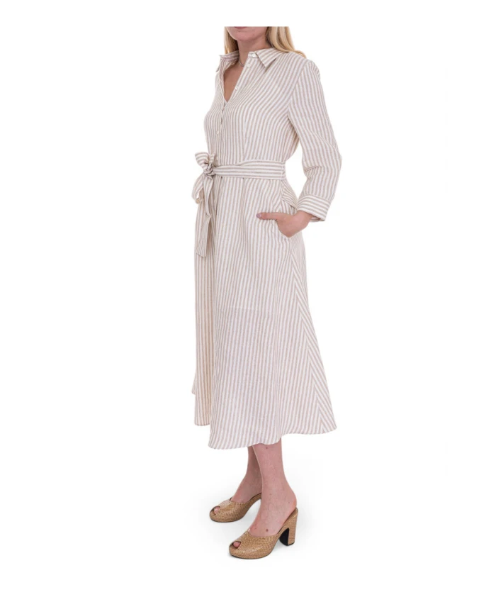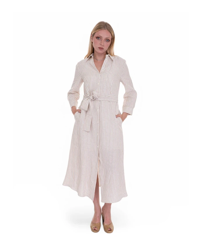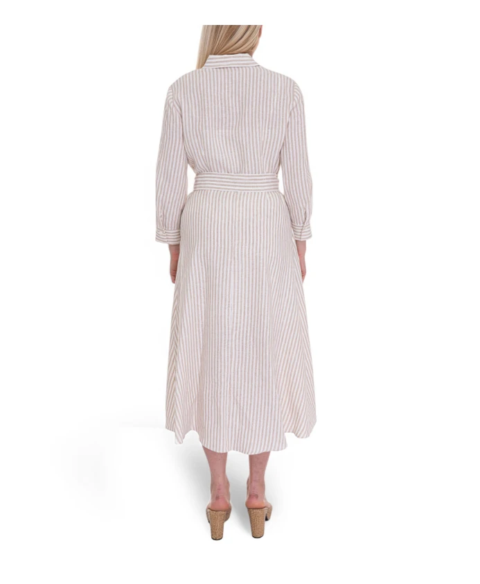 Полосатое льняное платье-рубашка с поясом Pennyblack, белый