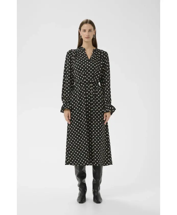 Платье-рубашка InWear - это универсальная базовая вещь от InWear, созданная для комфортной повседневной носки и создания непринужденных образов. Ключевые особенности: Черный | Черный в горошек