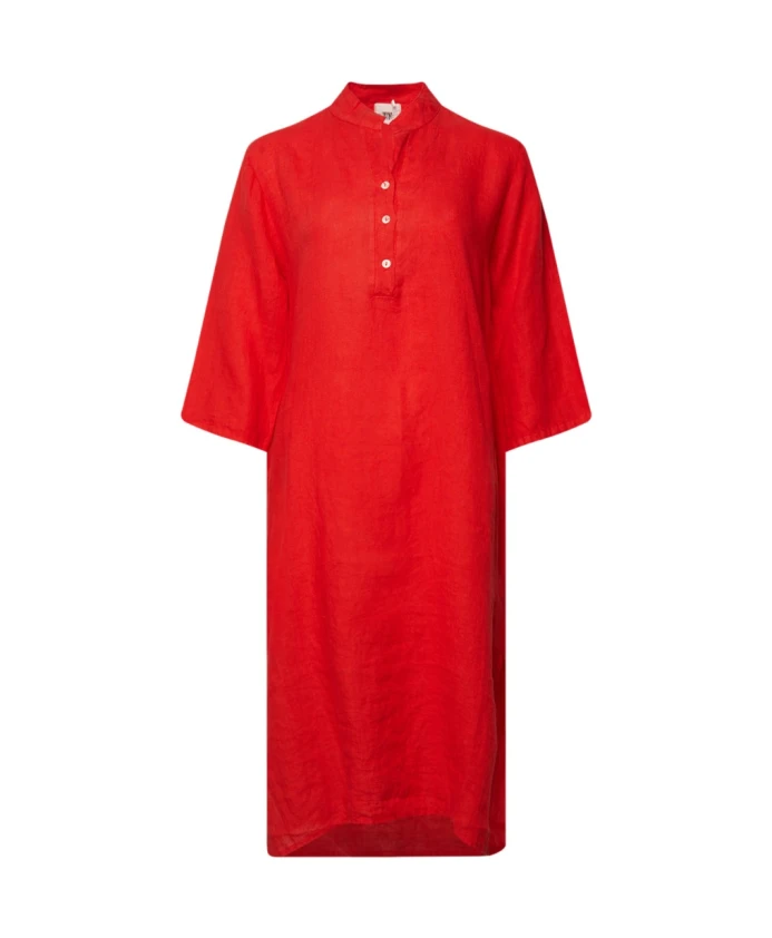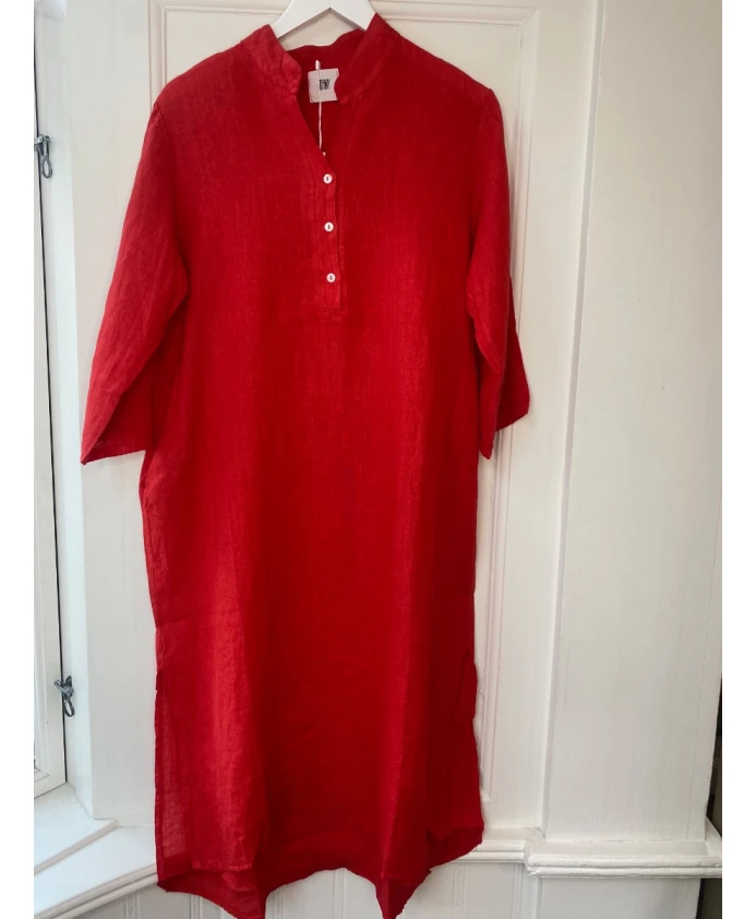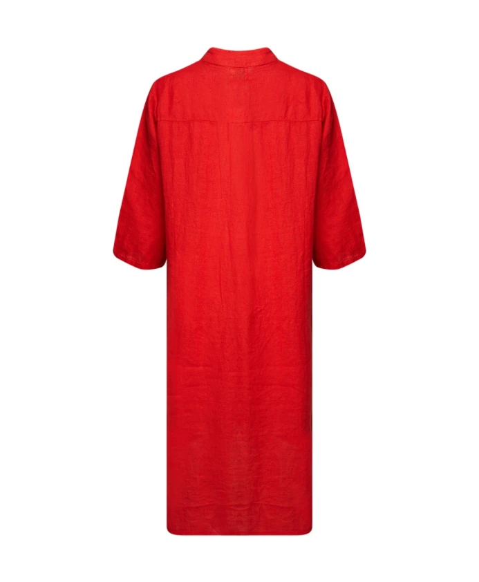 Длинное льняное платье-рубашка с карманом Tiffany, красный