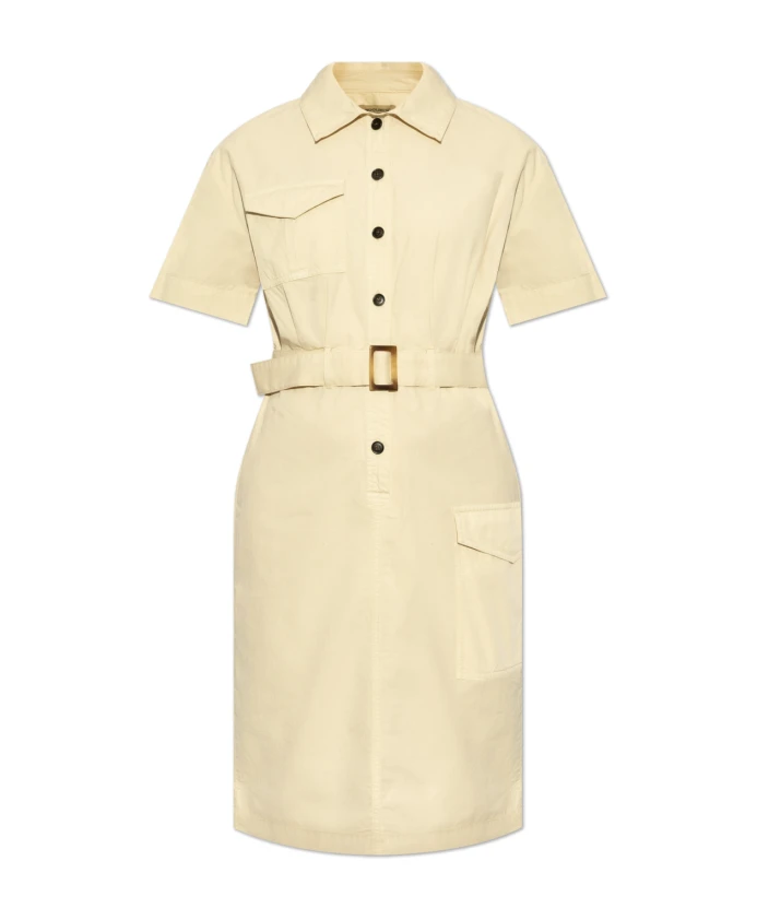 Откройте для себя уникальное платье с поясом от Woolrich, чей кремовый оттенок и утонченный дизайн привлекают внимание. Это платье средней длины с короткими рукавами и элегантной застежкой на пуговицах спереди гармонично сочетает классический стиль с современным шармом. Изготовленное из высококачественного хлопка, платье не только элегантно, но и комфортно. Регулируемый пояс с прямоугольной пряжкой элегантно подчеркивает талию и добавляет выразительности силуэту. Дополнительные особенности включают практичный нагрудный карман и функциональный накладной карман на юбке. На спине пояса ненавязчиво красуется этикетка с надписью «WOOLRICH», что является отсылкой к престижу бренда, известного своим исключительным мастерством и традициями, восходящими к 1830 году. Это платье воплощает вневременную эстетику, идеально подходящую для самых разных случаев. ПОЧЕМУ СТОИТ КУПИТЬ ЭТОТ ТОВАР? * Элегантная и универсальная цветовая гамма. * Исключительное качество хлопковой ткани. * Функциональные карманы, повышающие практичность. * Регулируемый пояс, подчеркивающий силуэт. * Престижный товарный знак Woolrich. Параметры модели: Рост: 177 см, Обхват груди: 83 см, Обхват талии: 61 см, Обхват бедер: 89 см. Модель носит размер: S