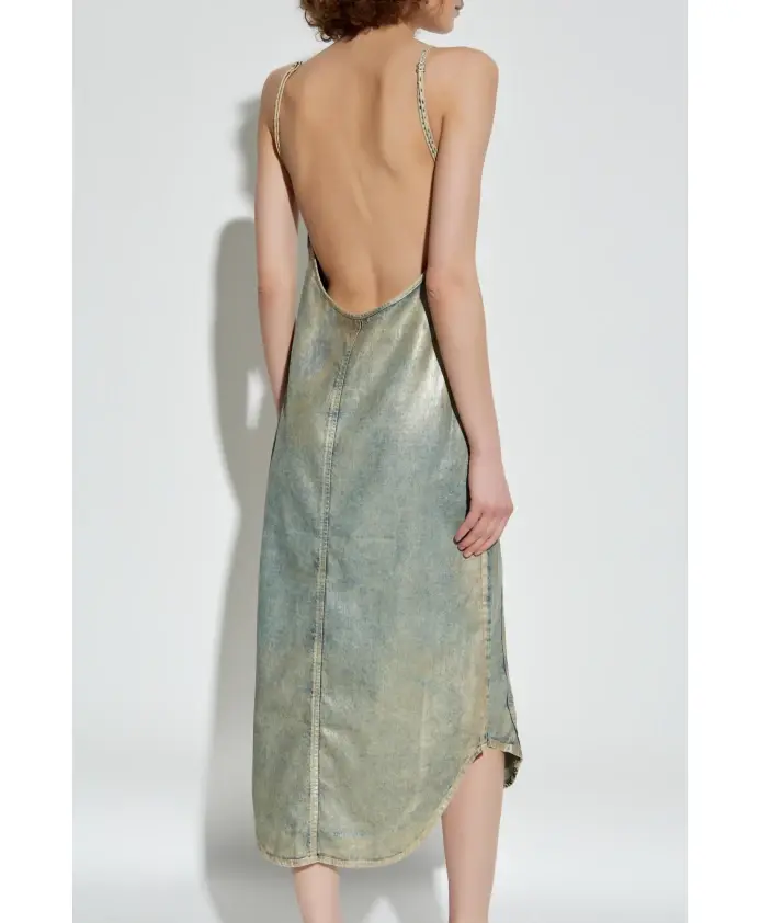 Платье DE-VERA-S очаровывает своей утонченной простотой и вневременной элегантностью. Выполненное в теплом бежевом оттенке из изысканно подобранных тканей с легким металлическим блеском и эффектной «выстиранной» отделкой, напоминающей роскошный деним, оно подчеркивает современный, утонченный характер современной женщины. Длина миди, слегка приталенный силуэт, тонкие бретельки и глубокий вырез на спине идеально подчеркивают плечи и спину, придавая фигуре воздушную легкость. Однородный, гладкий узор и замысловатые швы подчеркивают тщательность исполнения. Уникальной деталью является овальная металлическая эмблема с буквой «D», расположенная по центру груди - элегантный фирменный знак модного дома Diesel. ПОЧЕМУ ЭТОТ ТОВАР СТОИТ КУПИТЬ? * Исключительное сочетание эксклюзивного мастерства и современного дизайна * Роскошные, приятные на ощупь материалы высочайшего качества * Эффектный глубокий вырез на спине, подчеркивающий женственный силуэт * Оригинальная эмблема бренда Diesel - гарантия подлинности и престижа * Идеальный выбор как для особых случаев, так и для повседневной носки Параметры модели: Рост: 193 см Обхват груди: 95 см Обхват талии: 82 см Обхват бедер: 93 см Модель носит размер: S