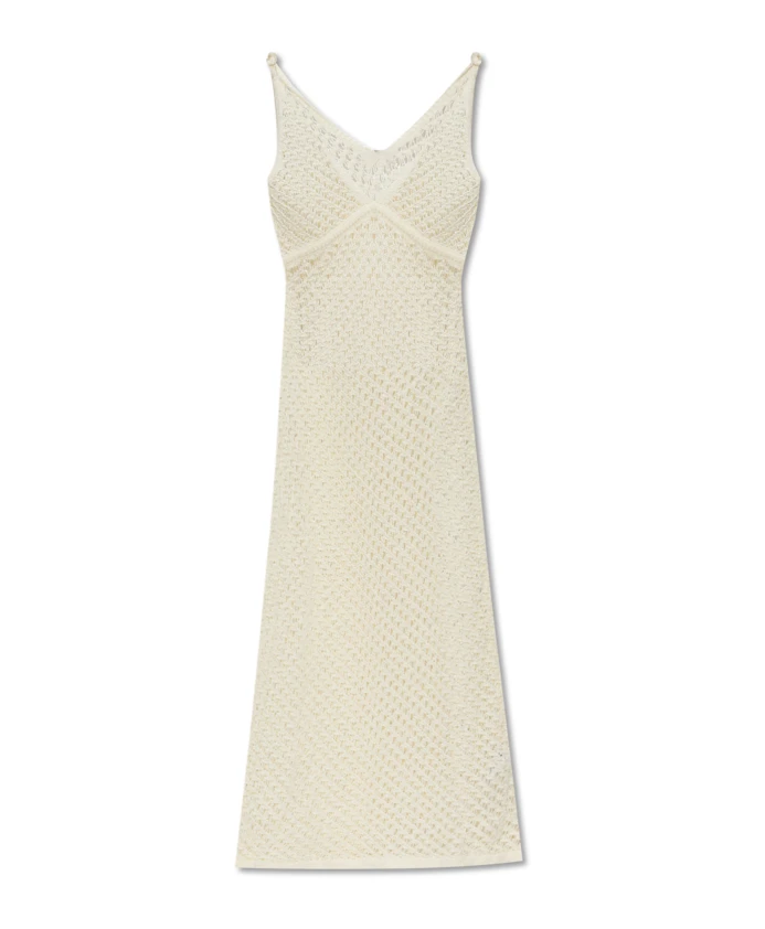Представляем изысканное платье «SULIVAN» из эксклюзивной коллекции CULT GAIA, элегантность которого очаровывает с первого взгляда. Это результат вдохновения, почерпнутого из природы и женской силы, в сочетании с мастерством дизайнера Жасмин Хекмат. Платье имеет простой, облегающий силуэт с глубоким V-образным вырезом. Изготовленное из мягкой и эластичной ткани с ажурным сетчатым узором, оно гарантирует комфорт и воздухопроницаемость. Преобладающий кремовый цвет и длина миди придают платью классический и универсальный характер. Это идеальный выбор как для летних дней, так и для вечерних выходов. Ткань соткана таким образом, что создает нежный геометрический узор, подчеркивающий ее уникальный стиль. ПОЧЕМУ СТОИТ КУПИТЬ ЭТОТ ТОВАР? * Эксклюзивный дизайн от известного бренда Cult Gaia. * Уникальный ажурный узор, подчеркивающий исключительный стиль. * Комфортная, эластичная ткань из вискозы и хлопка. * Элегантный кремовый цвет, подходящий для многих случаев. * Современный, но классический крой, идеально подходящий для различных случаев. Параметры модели: Рост: 177 см, Обхват груди: 83 см, Обхват талии: 61 см, Обхват бедер: 89 см. Модель носит размер: S.