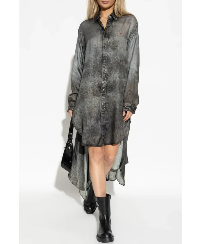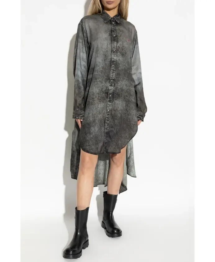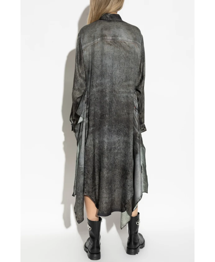Платье D-ILETTA от Diesel - это необычный выбор для женщин, ценящих комфорт и авангардный стиль. Свободный силуэт платья-рубашки, длинные рукава с манжетами и асимметричная, удлиненная спинка подчеркивают современную, непринужденную элегантность. Изготовленное из струящейся вискозы, это платье тонко имитирует выстиранный деним, обеспечивая ощущение мягкости и комфорта при каждом движении. Серый, мраморный оттенок создает многомерный, визуально изысканный эффект, идеально дополняющий последние тенденции премиум-модной индустрии. Небольшой вышитый красный логотип подчеркивает высокий класс дизайна и служит фирменным знаком Diesel - культового итальянского модного дома, известного своим богатым наследием мастерства и индивидуальности. ПОЧЕМУ СТОИТ ВЫБРАТЬ ЭТОТ ТОВАР? * Уникальный, объемный силуэт с современным кроем * Высококачественная ткань - удобная и комфортная в носке * Эффект потертости - оригинальность и неповторимый вид * Репутация Diesel в сочетании с традициями итальянского дизайна * Ненавязчивый красный логотип - нотка роскоши Параметры модели Рост: 176 см Обхват груди: 85 см Обхват талии: 60 см Обхват бедер: 89 см Модель носит размер: 40