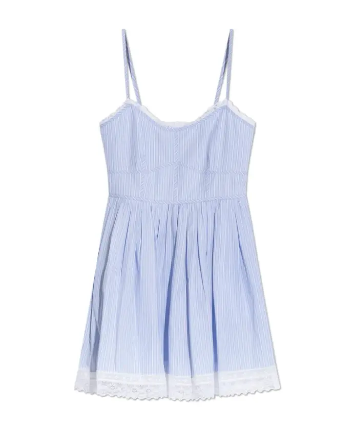 Миниатюрное платье HARRISINE от LoveShackFancy - воплощение утонченной легкости и утонченной элегантности. Классический силуэт, расклешенная юбка и тонкие регулируемые бретели гармонично подчеркивают плечи и выделяют естественную красоту фигуры. Легкая ткань из высококачественного хлопка обеспечивает комфорт в любой ситуации и практически неощутима на коже. Синие вертикальные полосы создают эффект стройности, а белые декоративные кружева подчеркивают женственность и эксклюзивность изделия. Тщательно проработанный пояс подчеркивает силуэт и придает платью легкость, а эластичная спинка гарантирует идеальную посадку. Отсутствие видимых логотипов подчеркивает вневременную изысканность дизайна. ПОЧЕМУ СТОИТ ВЫБРАТЬ ЭТОТ ТОВАР? * Исключительная легкость и воздухопроницаемость благодаря изысканному хлопку * Эксклюзивная кружевная отделка для стиля и женственности * Регулируемые бретели и эластичная вставка для идеальной посадки * Классический, универсальный крой, подходящий для многих случаев * Разработано известным брендом LoveShackFancy Параметры модели Рост: 177 см Обхват груди: 83 см Обхват талии: 61 см Обхват бедер: 89 см Модель носит размер: S
