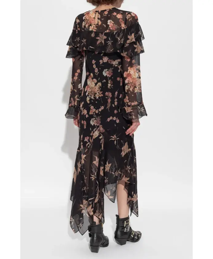 Платье «FRESCA» от AllSaints впечатляет своей утонченностью и уникальным дизайном. Длина миди и изысканный, расклешенный подол с неровными, мягко обработанными краями создают исключительно легкий и воздушный эффект. Нежный цветочный узор в приглушенных, натуральных тонах на глубоком черном фоне подчеркивает эксклюзивный характер изделия и восхищает своим утонченным вкусом. Лиф имеет V-образный вырез и длинные, слегка расклешенные рукава, украшенные изысканными оборками, что добавляет динамизма силуэту. Прозрачная, легкая ткань с роскошным блеском обеспечивает многослойность и комфорт. Нежный разрез спереди добавляет дополнительную нотку чувственного очарования. ПОЧЕМУ ЭТОТ ТОВАР СТОИТ КУПИТЬ? * Уникальный узор, вдохновленный природой, и неровный подол, подчеркивающие индивидуальность. * Легкость и воздухопроницаемость ткани обеспечивают комфорт в особые моменты. * Тщательная работа - оборки и разрез - подчеркивают утонченный стиль. * Создано известным брендом AllSaints, который сочетает инновации с вневременной элегантностью. Параметры модели: Рост: 177 см, Обхват груди: 83 см, Обхват талии: 61 см, Обхват бедер: 89 см. Модель носит размер: 8.