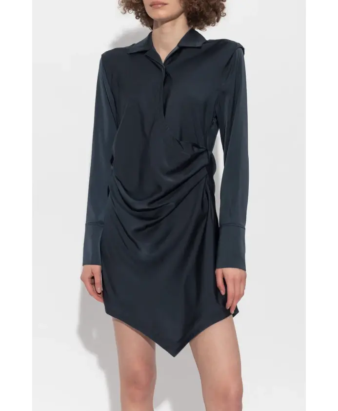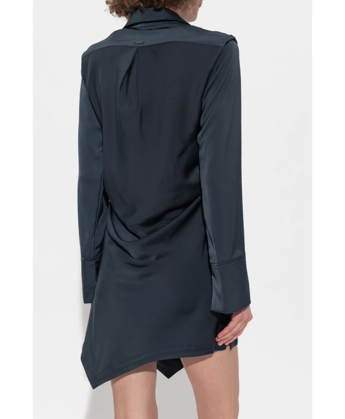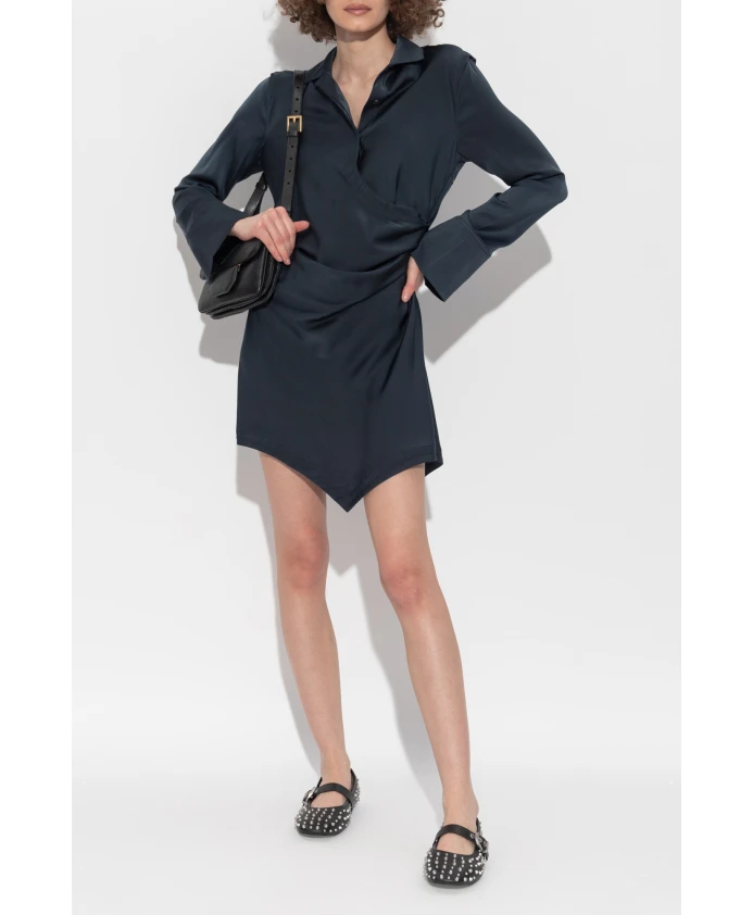 Мини-платье TIRA глубокого темно-синего цвета - уникальный выбор для истинных ценителей изысканной моды. Мини-длина, подчеркнутая слегка асимметричным дизайном, очаровывает смелым заостренным подолом, создавая утонченный авангардный эффект. Длинные рукава с широкими манжетами подчеркивают эксклюзивный характер этого изделия, а классический воротник-стойка добавляет вневременного очарования. Эффектная драпировка на талии и бедрах выгодно подчеркивает фигуру, создавая ощущение легкости и объема. Платье сшито из гладкой, слегка мерцающей ткани, которая ласкает чувства и гарантирует исключительный комфорт. Это предложение сбалансированной элегантности, идеально подходящее для особых случаев. ПОЧЕМУ СТОИТ КУПИТЬ ЭТОТ ТОВАР? * Оригинальный асимметричный крой со смелыми деталями * Роскошная, мерцающая ткань и замысловатая драпировка * Изысканные детали: широкие манжеты и классический воротник-стойка * Дизайн от известного бренда AllSaints * Прекрасно формирует силуэт и подчеркивает индивидуальный стиль. Параметры модели: Рост: 177 см, Обхват груди: 83 см, Обхват талии: 61 см, Обхват бедер: 89 см. Модель носит размер 8.