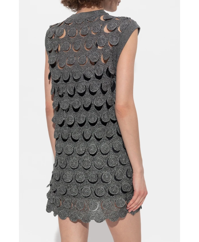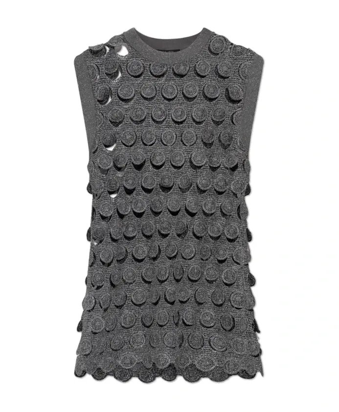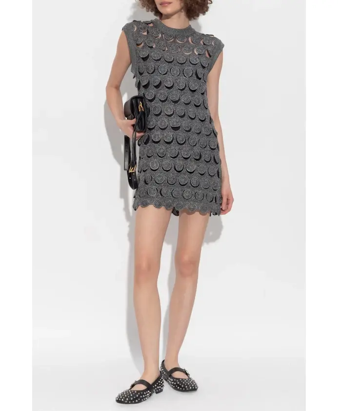 Платье "IRIS" от AllSaints воплощает в себе суть современной элегантности в силуэте мини без рукавов. Мягкий крой, высокий воротник и слегка открытые плечи придают ему уникальную легкость и вневременной характер. Наиболее привлекательной особенностью является объемная отделка, состоящая из повторяющихся, перекрывающихся круговых мотивов, создающих глубину и изысканную текстуру. Платье сшито из сетчатой ткани с открытым плетением и нежным металлическим блеском, напоминающим замысловатый вязаный или вышитый шедевр. Волнистый подол подчеркивает неровность и уникальную красоту этого творения, делая его изысканным акцентом для любого образа. ПОЧЕМУ СТОИТ КУПИТЬ ЭТОТ ТОВАР? * Уникальный трехмерный узор, придающий изделию индивидуальность * Роскошная сетчатая ткань с металлическим блеском * Оригинальный дизайн в стиле Восточного Лондона от AllSaints * Изысканная отделка, подчеркивающая индивидуальный стиль * Современная интерпретация классического стиля в эксклюзивной коллекции Параметры модели Рост: 177 см Обхват груди: 83 см Обхват талии: 61 см Обхват бедер: 89 см Модель носит размер: S