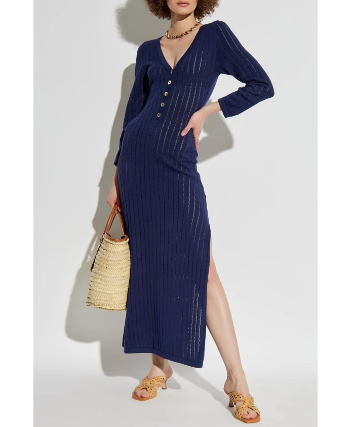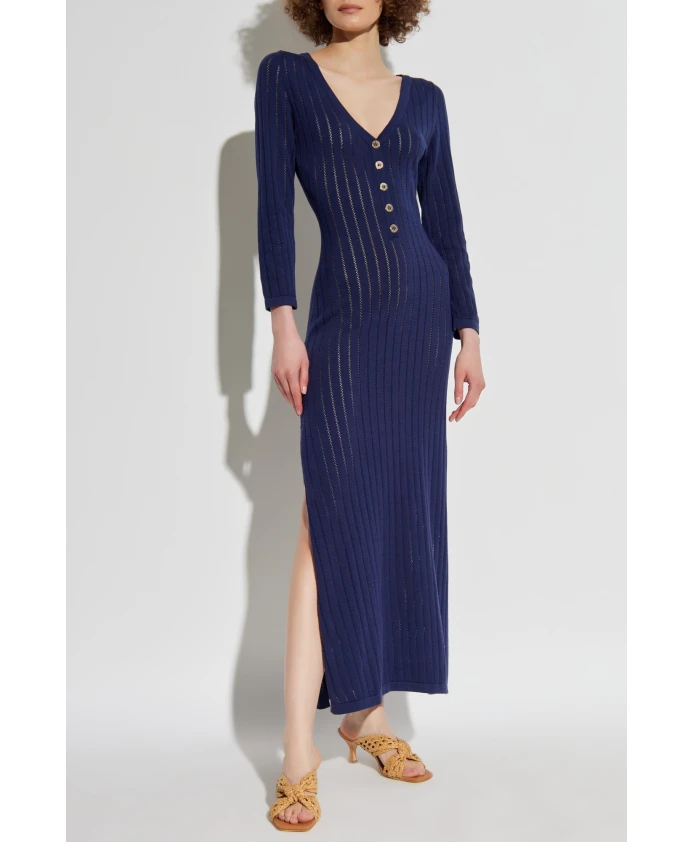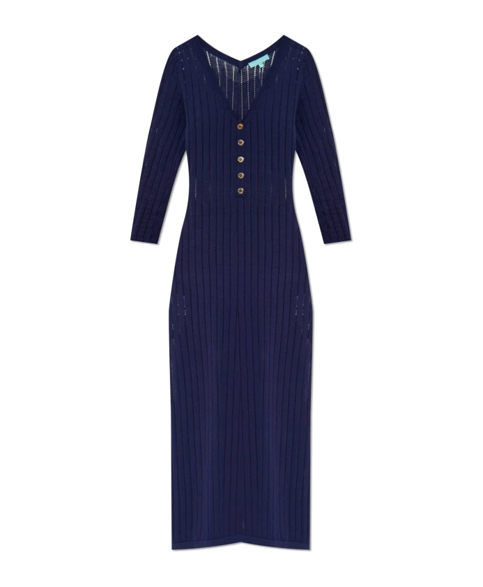 Представляем платье «JADE» - шедевр элегантности, созданный для женщин, ценящих изысканный стиль и комфорт. Простой, облегающий силуэт с длинными рукавами и глубоким V-образным вырезом идеально подчеркивает фигуру, добавляя очарования и утонченности. Изготовленное из 100% хлопка, платье гарантирует непревзойденный комфорт. Мягкая и эластичная ткань идеально подходит для любого случая. Нежный вертикальный кружевной узор и золотые пуговицы с выгравированными надписями добавляют нотку роскоши и отражают утонченный стиль бренда Melissa Odabash. Дизайн выполнен в элегантном темно-синем цвете с боковыми разрезами, обеспечивающими легкость и свободу движений. Дизайн Melissa Odabash - это высокая мода, созданная с пленительным шиком и этичным подходом к моде. ПОЧЕМУ СТОИТ КУПИТЬ ЭТОТ ТОВАР? * Уникальный стиль и элегантность для любого случая. * 100% хлопок для комфорта в течение всего дня. * Эксклюзивный дизайн от Melissa Odabash с роскошными деталями. Параметры модели: Рост: 176 см, Обхват груди: 85 см, Обхват талии: 60 см, Обхват бедер: 89 см. Модель носит размер: S.