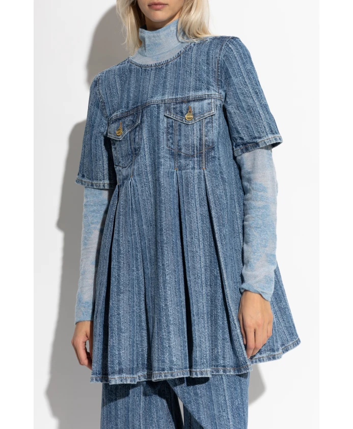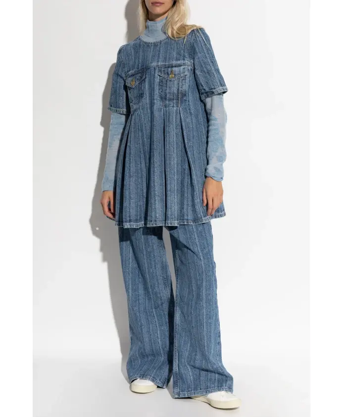 Полосатое джинсовое платье в складку Ganni, синий 36 981₽