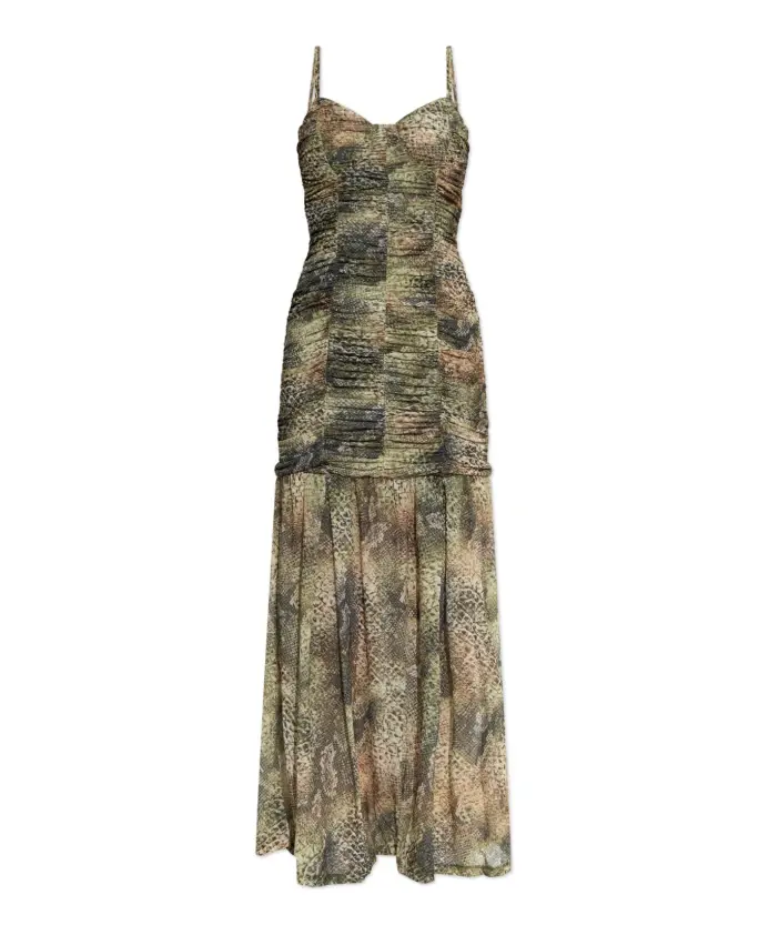 Представляем элегантное платье GZSNIRA от известного бренда GESTUZ. Вдохновленное скандинавским минимализмом, это платье предлагает уникальный стиль в сочетании с гармоничной эстетикой. Длинный крой подчеркивает силуэт благодаря облегающему лифу на тонких бретелях и расклешенной юбке. Нежная, напоминающая змеиную кожу текстура ткани обогащена различными оттенками зеленого и коричневого, что делает этот узор одновременно ярким и шикарным. Изготовленное из высококачественного материала, платье гарантирует комфорт и долговечность. Отсутствие видимых логотипов или надписей дизайнера подчеркивает его минималистичный характер. ПОЧЕМУ СТОИТ КУПИТЬ ЭТОТ ТОВАР? * Крой, подчеркивающий женственный силуэт. * Уникальный узор, вдохновленный природой. * Высококачественный фактурный материал. * Минималистичный, элегантный стиль, подходящий для различных случаев. Параметры модели: Рост: 177 см, Обхват груди: 83 см, Обхват талии: 61 см, Обхват бедер: 89 см. Модель носит размер: S