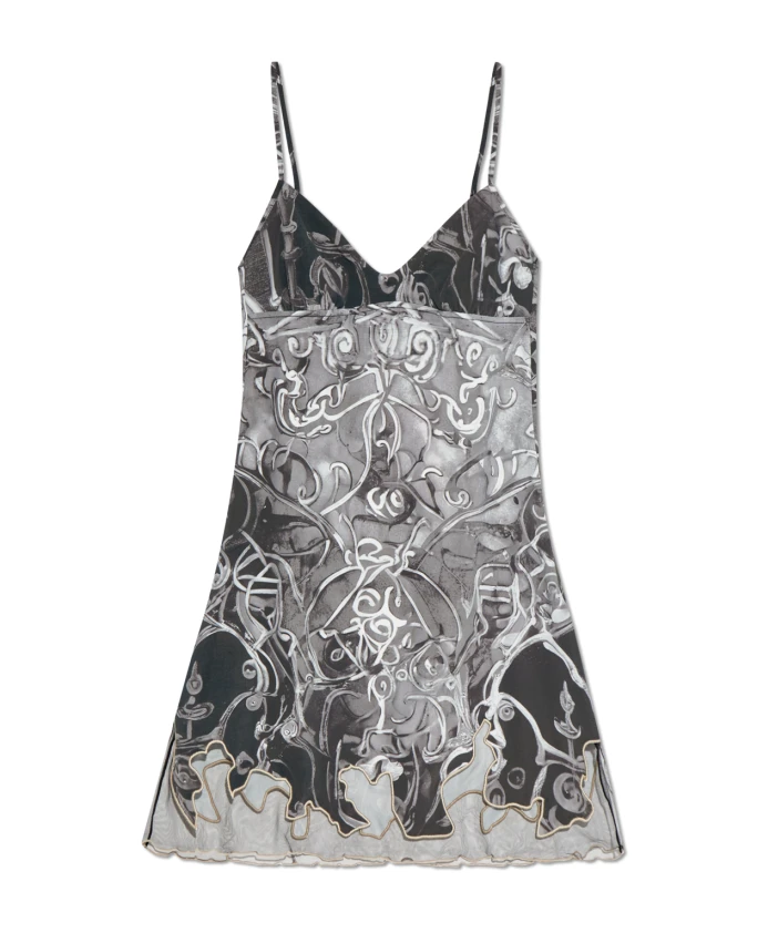 Платье D-INLAY от Diesel - это воплощение изысканного дизайна, вдохновленного итальянским мастерством. Его мини-силуэт с тонкими бретелями деликатно подчеркивает плечи, а приталенный лиф элегантно выделяет декольте. Завораживающий многоцветный узор в абстрактных оттенках серого и оригинальных завитках раскрывает авангардный характер дизайна. Легкая и полупрозрачная ткань, напоминающая замысловатую сетку или шифон, придает изделию ауру эксклюзивности и непринужденности. Эффектные, волнообразные вырезы, отделанные контрастной нитью и имеющие неровные края, делают это платье поистине уникальной композицией современности. ПОЧЕМУ СТОИТ КУПИТЬ ЭТОТ ТОВАР? * Уникальный крой и отделка с вниманием к деталям * Эксклюзивный многоцветный узор, вдохновленный современной эстетикой * Исключительно легкая и нежная ткань * От известного модного дома Diesel Параметры модели Рост: 176 см Обхват груди: 85 см Обхват талии: 60 см Обхват бедер: 89 см Модель носит размер: S