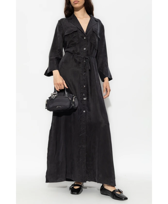 Свободное макси-платье из купро Ganni, черный