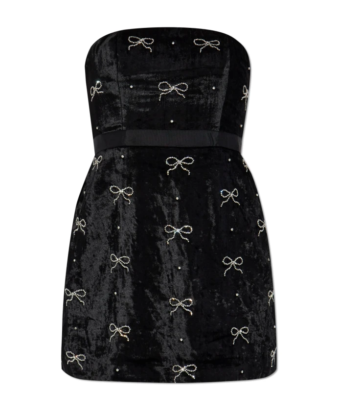 Потрясающее черное платье RINWELL из эксклюзивной коллекции LoveShackFancy - воплощение утонченного стиля и элегантности. Это платье без бретелей, облегающее фигуру, подчеркивает силуэт и демонстрирует естественную красоту. Изготовленное из бархатистой ткани, оно сочетает в себе утонченность и роскошь. Вся поверхность платья украшена декоративными арочными аппликациями из сверкающих кристаллов, что придает ему неповторимый шарм. Удобная застежка-молния сзади позволяет легко надевать и снимать это необыкновенное платье. ПОЧЕМУ СТОИТ КУПИТЬ ЭТОТ ТОВАР? * Уникальный дизайн с кристальными аппликациями. * Высококачественные материалы - вискоза, нейлон и полиэстер. * Элегантный, но современный вид. * Удобство использования благодаря молнии. Параметры модели: Рост: 177 см, Обхват груди: 83 см, Обхват талии: 61 см, Обхват бедер: 89 см. Модель носит размер 4.