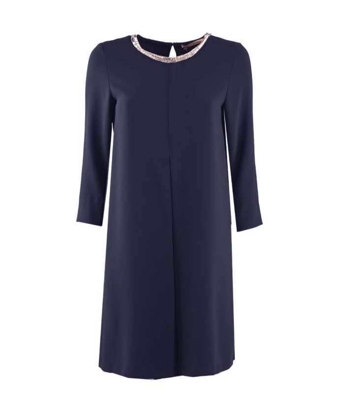 Платье Pennyblack Lindor сочетает в себе минималистичный силуэт туники и круглый вырез горловины, украшенный стразами, создавая элегантный и универсальный образ, подходящий как для работы, так и для повседневной носки. Основные характеристики: Синий | Полиэстер | Эластичная ткань, растягивающаяся в двух направлениях | Без подкладки | Круглый вырез горловины, украшенный стразами | Рукава 3/4 | Крой туники с расклешенным низом | Перевернутая складка спереди | Вырез-капелька сзади | Размеры и посадка: Туника | Состав и уход: 92% полиэстер, 8% эластан | Ручная стирка в холодной воде (макс. 40°C); не отбеливать; не сушить в сушильной машине; сушить в тени; гладить при низкой температуре; профессиональная химчистка (перхлорэтилен, деликатный режим); не стирать влажным способом; стирать в закрытом виде; не замачивать; вывернуть наизнанку перед стиркой.