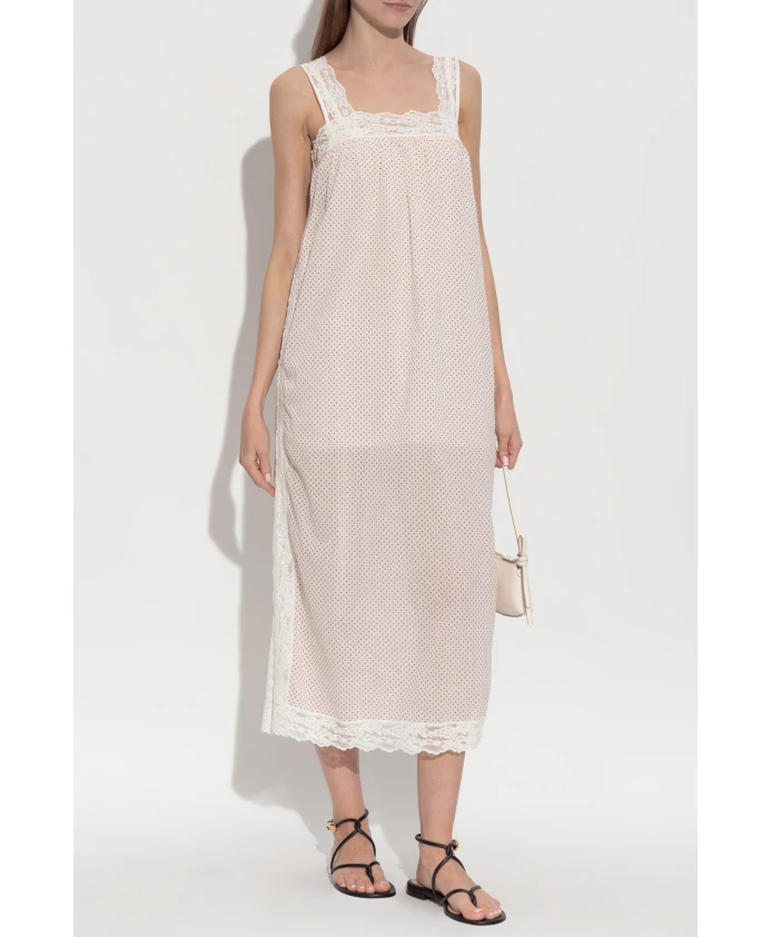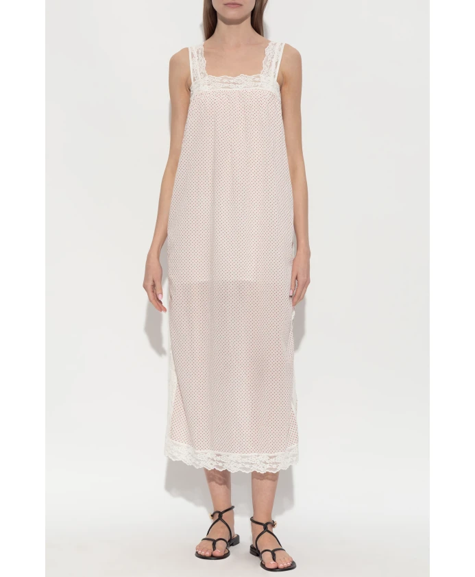 Платье Marlowe от POSSE сочетает в себе насыщенный кремовый хлопковый материал с мелкими красными точками и широкой кружевной отделкой, создавая воздушный, элегантный силуэт миди, идеально подходящий для дневных мероприятий и поездок на выходные. Ключевые особенности: Кремовый | Красный | Хлопок | Легкая, воздушная ткань | Дышащая ткань | Скрытая застежка-молния сбоку | На подкладке | Квадратный вырез | Кружевная отделка на вырезе, бретелях, по бокам и подоле | Удлиненный силуэт миди | Красный узор в горошек | Без видимых логотипов | Размеры и посадка: Рост модели: 177 см | Обхват груди модели: 83 см | Обхват талии модели: 61 см | Обхват бедер модели: 89 см | Модель носит размер: S | Удлиненный силуэт миди без выраженной талии | Состав и уход: Верхний слой: 100% хлопок | Подкладка: 100% хлопок | Ручная стирка в холодной воде