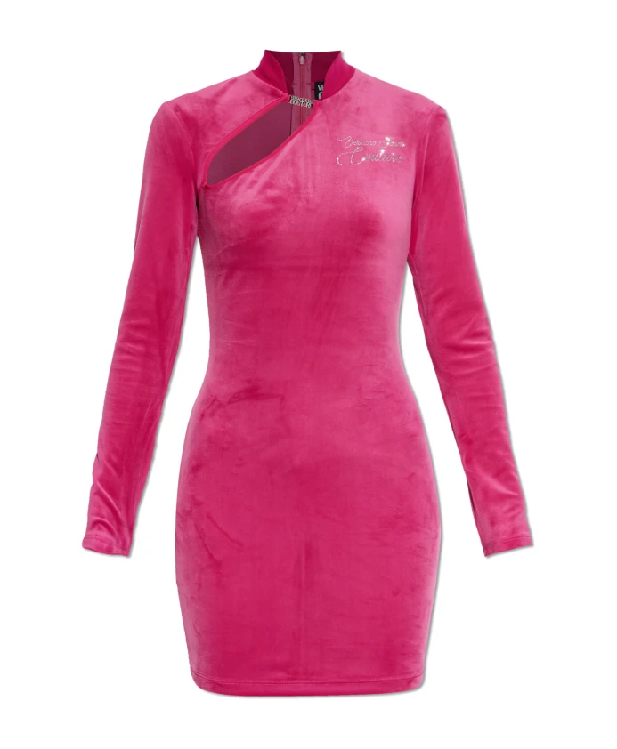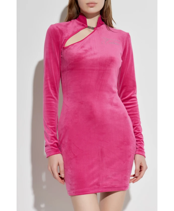 Бархатное платье со стоячим воротником Versace Jeans Couture, розовый