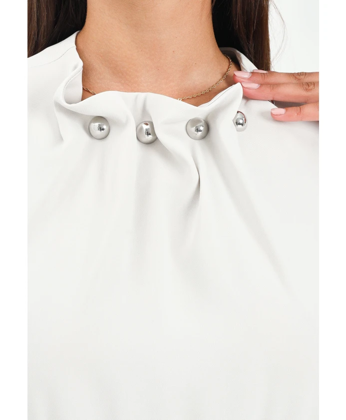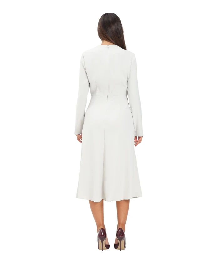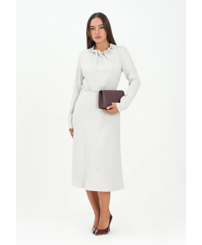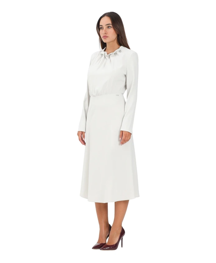 Бежевое платье миди со сборками на вырезе. Armani Exchange, белый